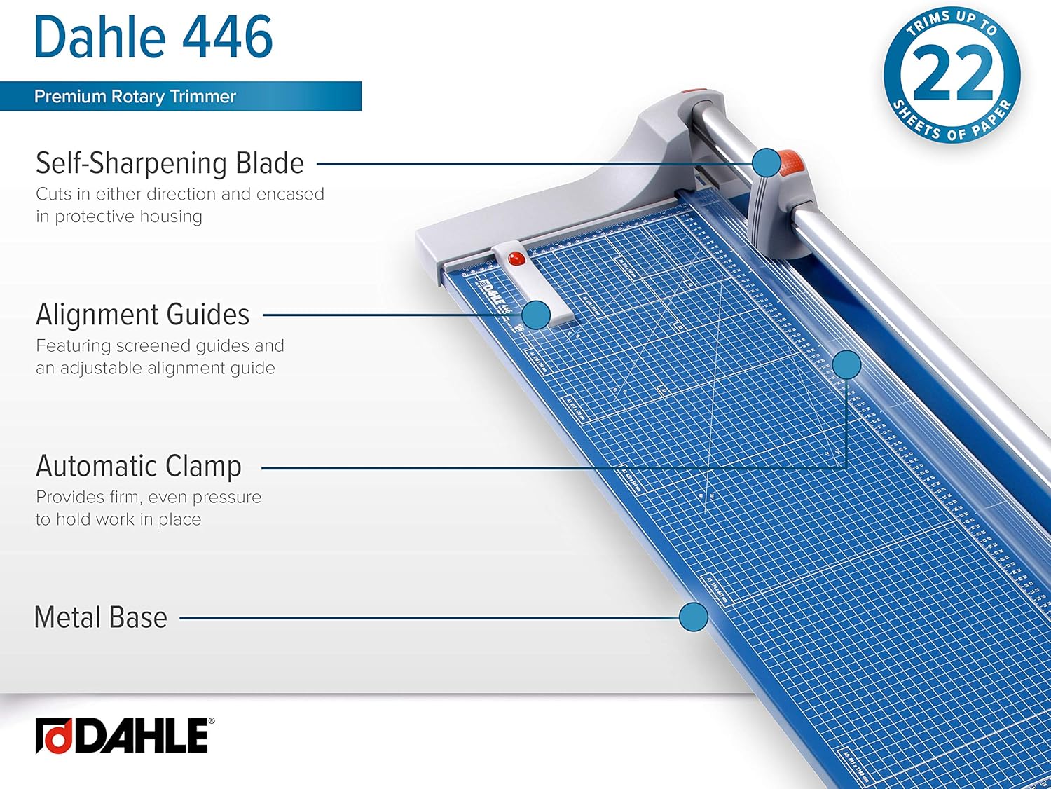 Dahle 446 Premium Rotary Trimmer, 36" Cut Length, 25 Sheet Capacity, Self-Sharpening, Automatic Clamp, German Engineered Paper Cutter