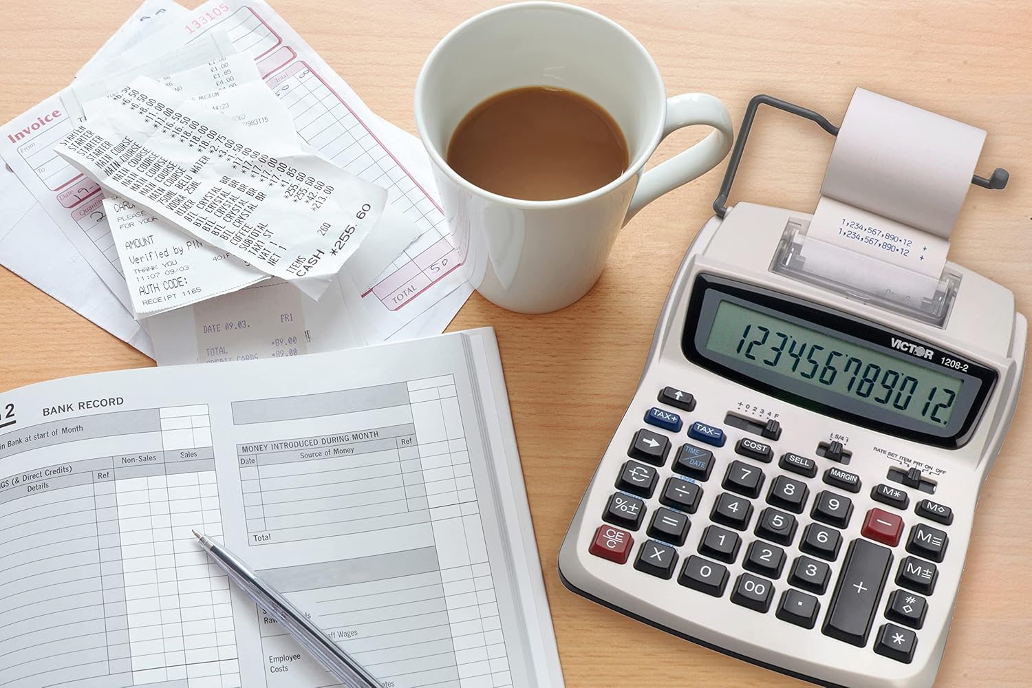 Victor Printing Calculator, 1208-2 Compact and Reliable Adding Machine with 12 Digit LCD Display, Battery or AC Powered, Includes Adapter,White