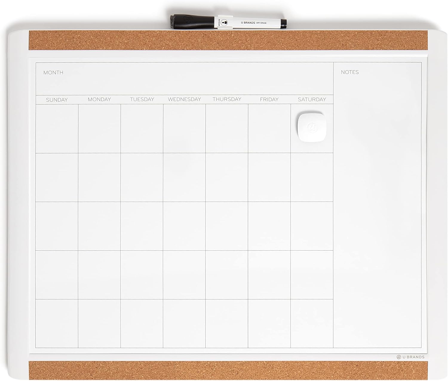 U Brands Magnetic Dry Erase Calendar White Board, 16" x 20", White Pin-It Frame, Includes Marker and Magnet