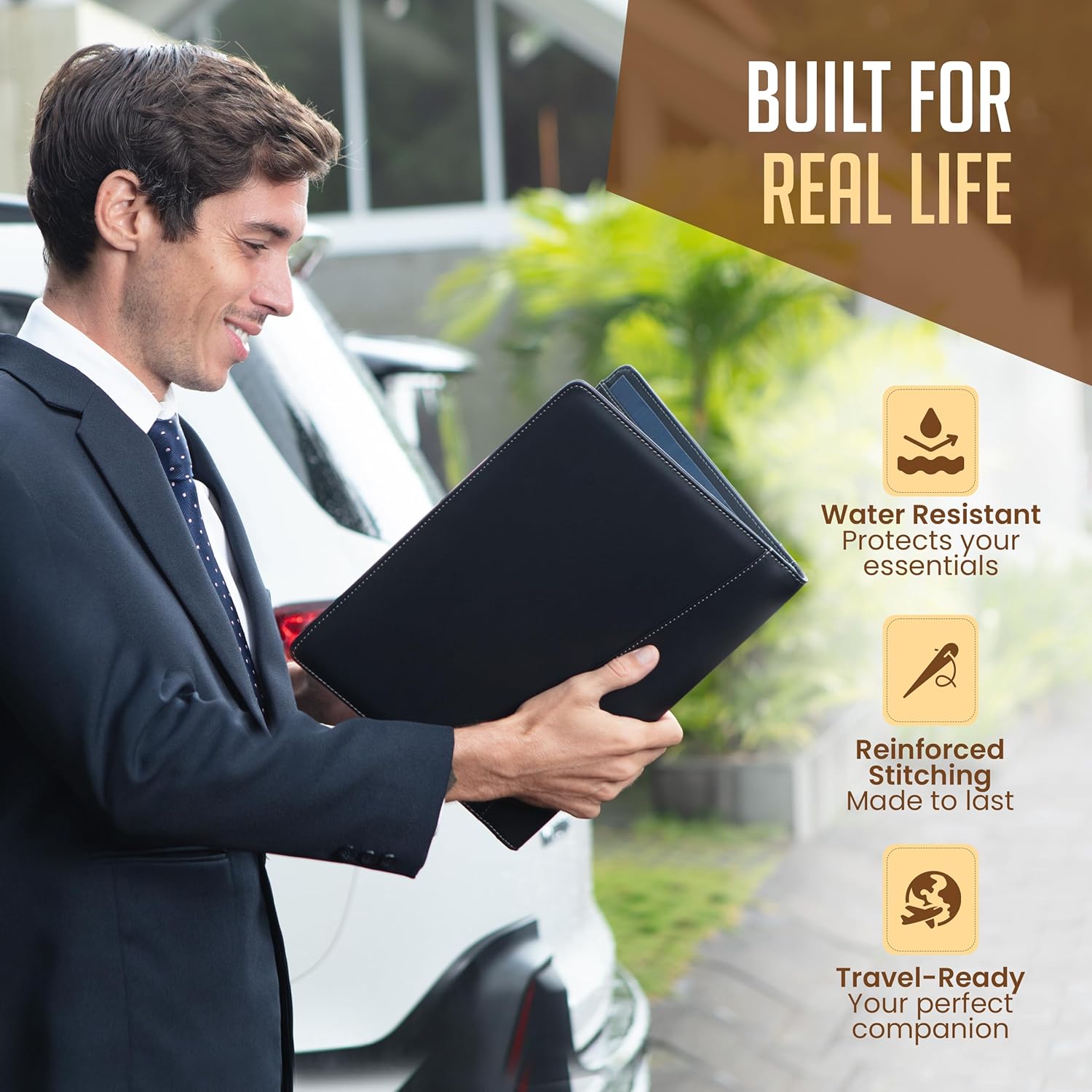 - ✅ PREMIUM DURABILITY – Ideal for today’s hectic business travel schedules, this document holder is water resistant and reinforced with accent stitching