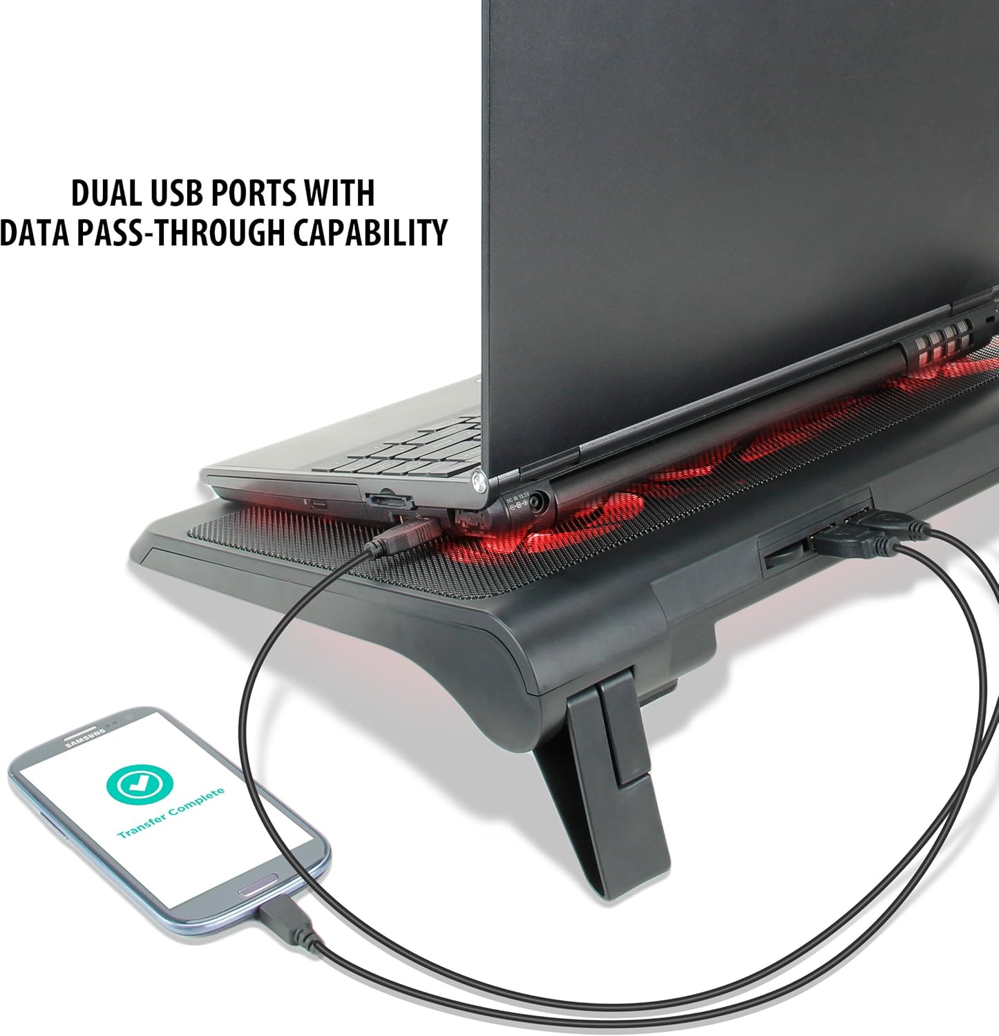 - HOLD YOUR GAMING LAPTOP IN PLACE: The cooling pad has front bumpers on the front that flip up so your gaming laptop stays on the cooling pad and you don't have to worry about your laptop falling