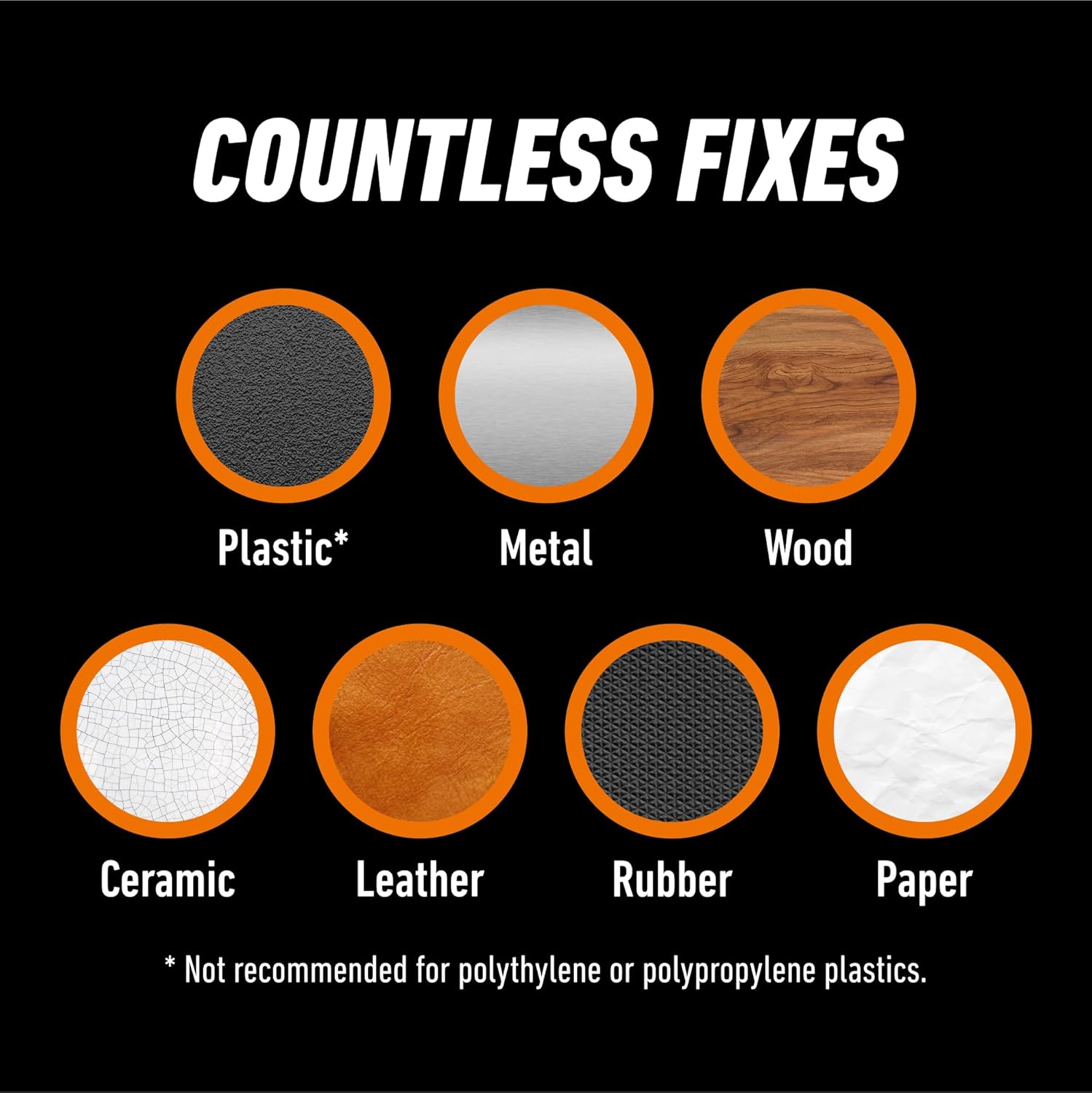 - All purpose glue: Gorilla Super Glue is formulated for virtually all projects and repairs; it bonds glass, plastic*, wood, metal, ceramic, rubber, leather, paper, and more