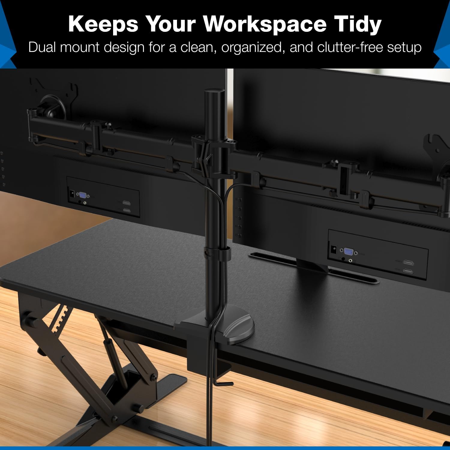 - Durable and Stable Design: Crafted from high-grade materials, this desk converter supports up to 33 lbs on the desktop and 17.6 lbs per monitor arm. Nonskid pads protect your desk surface from scratches and ensure stability.
