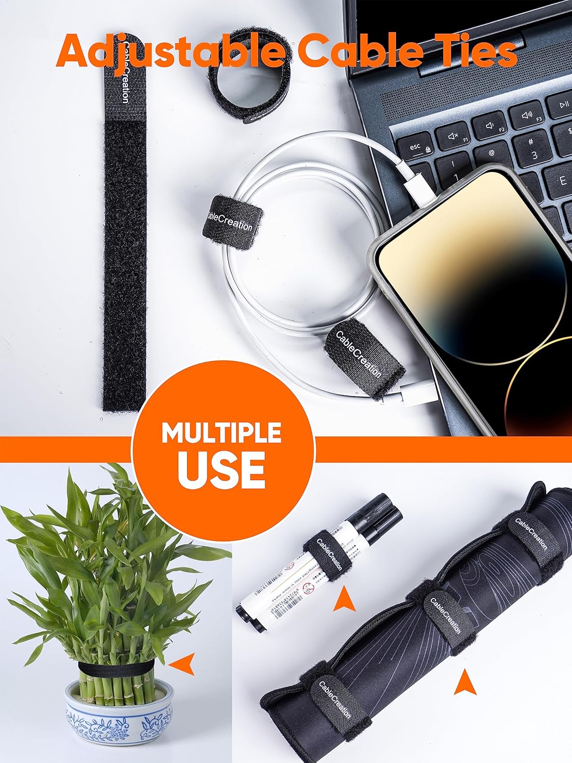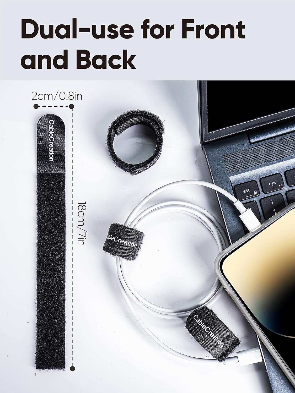 - Easy to Use: Simply wrap around the cable and attach the magic tape; Multiple cord organizer ties can be attached together to form one longer cord wrap organizer; They can be for the front and back dual-use