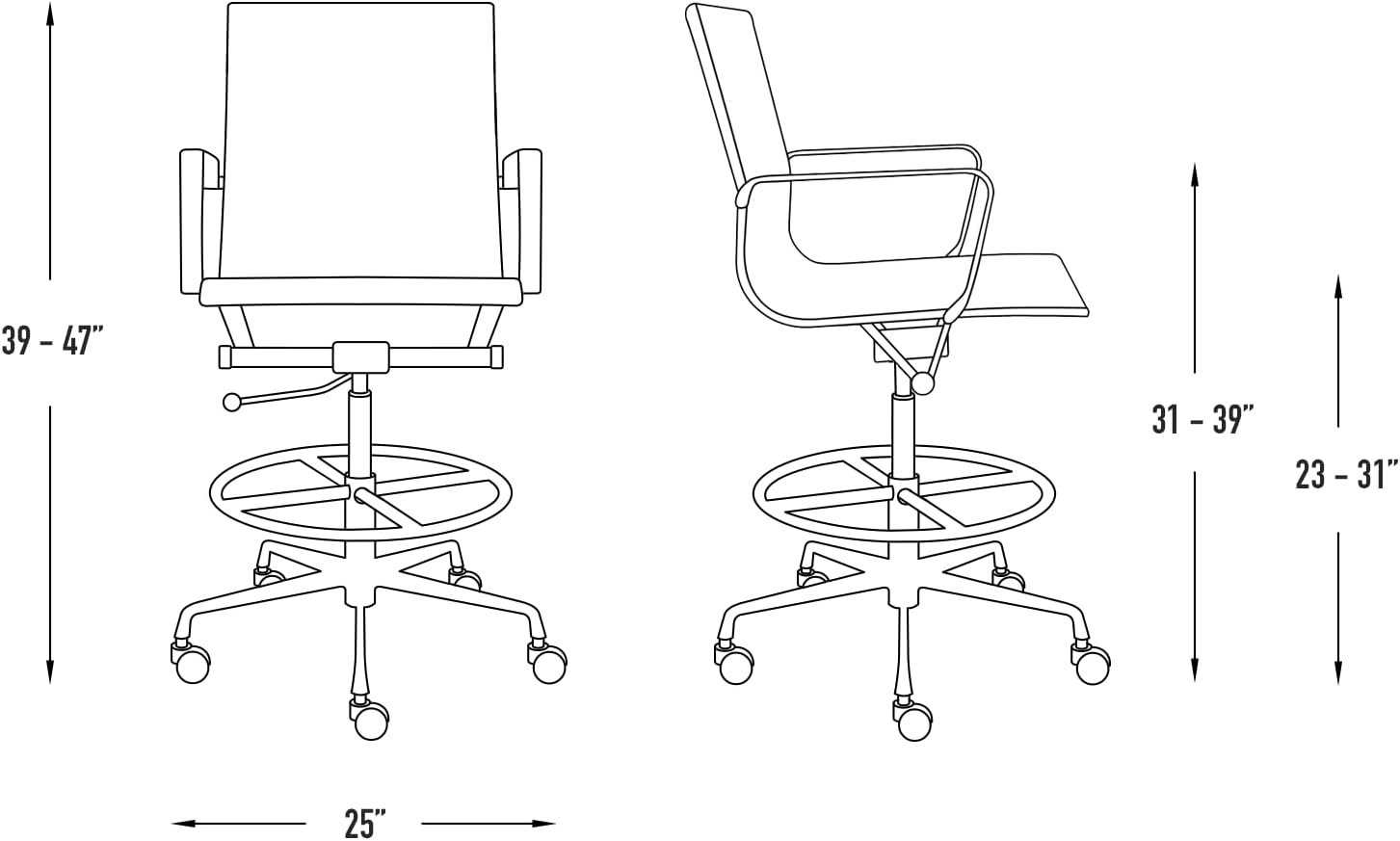 - Durable Aluminum Base with Steel Foot Ring and Additional Stationary Glides. The aluminum base not only looks great, but it’s also the strongest base on the market — supporting over 400 lbs. The base, foot ring, and stationary glides also provide a secure and reliable foundation for drafting height requirements.