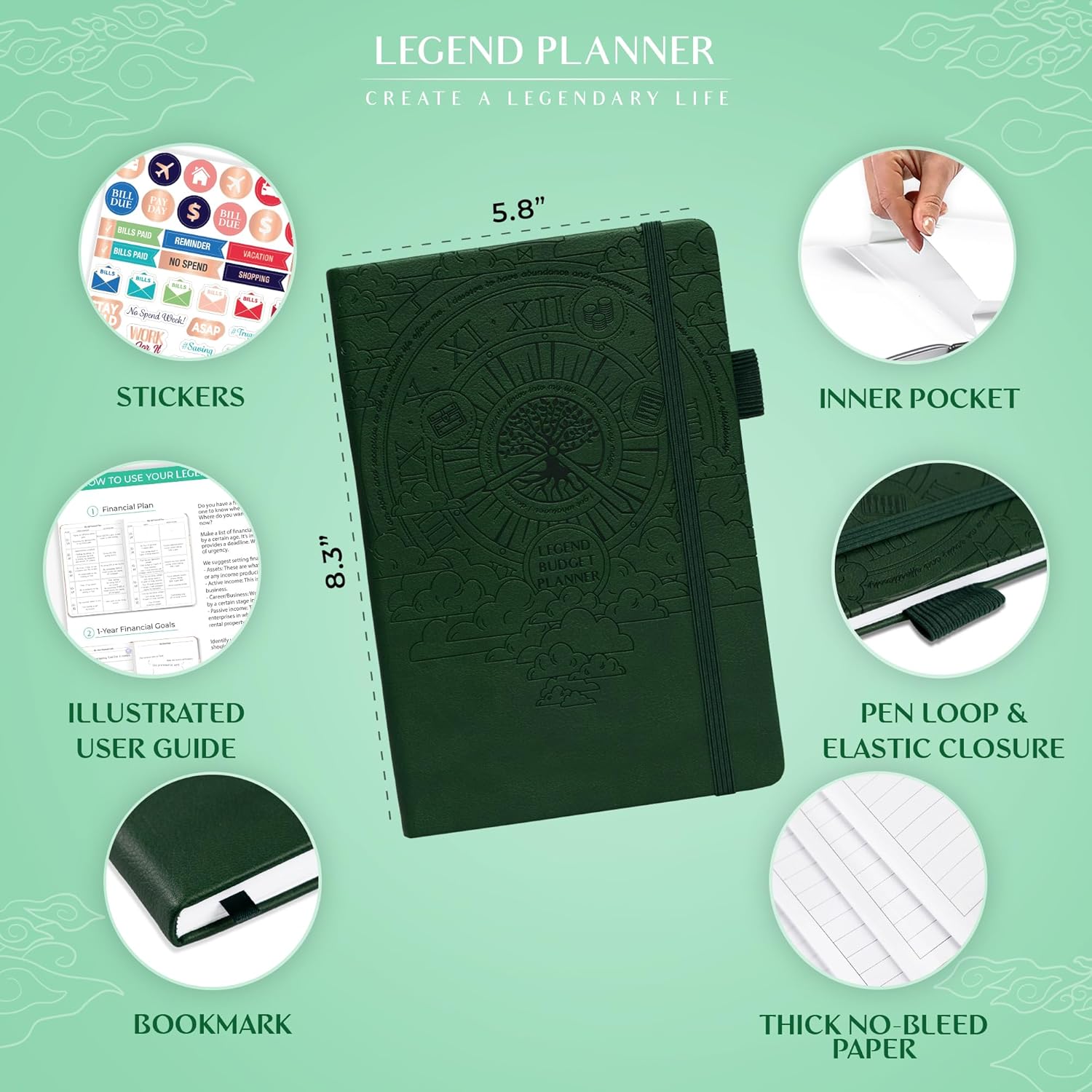 Legend Budget Planner – Financial Organizer Book. Money Account & Expense Tracker Notebook Journal for Household Monthly Budgeting (Dark Green)