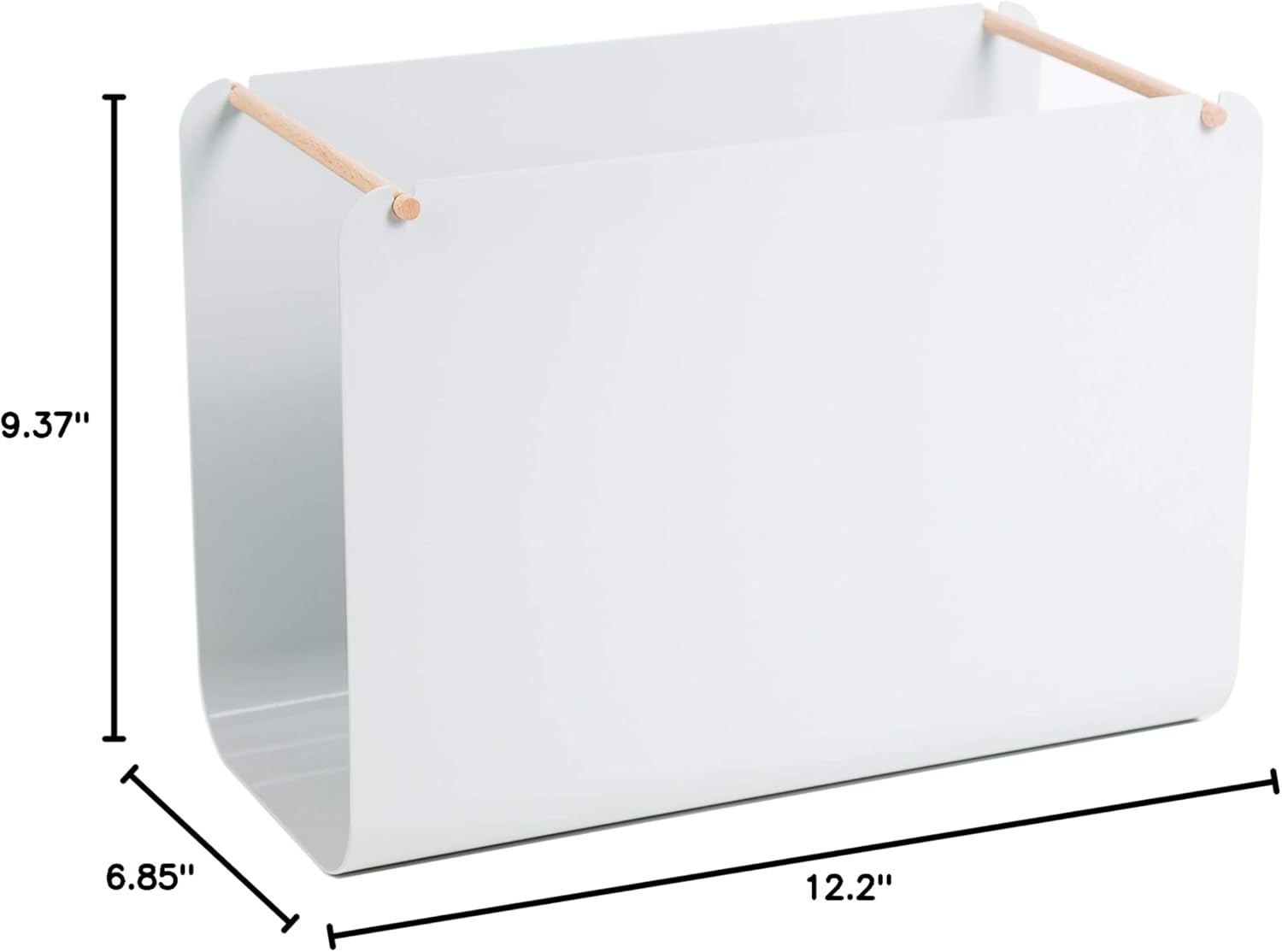 - Bent metal hanging file organizer measures 9.37" H, 12.2" W, 6.85" D
