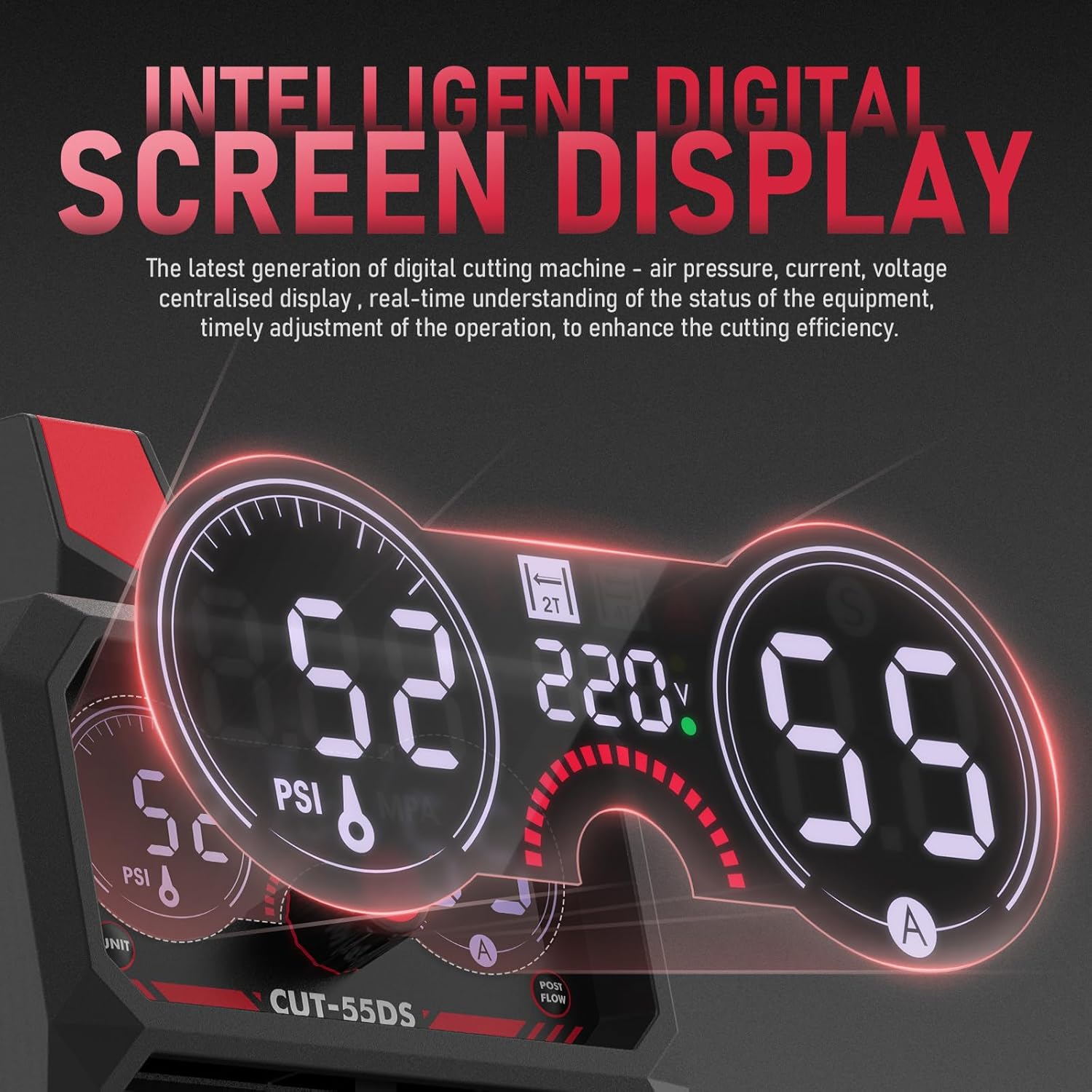 - DIGITAL DISPLAY: The latest digital display centrally shows parameters such as air pressure, voltage, current, etc., allowing users to view the status of the equipment in real time, adjusting the operation in a timely manner, and improving the efficiency of the operation. There will be an error code system on the screen if there is a problem with the machine.