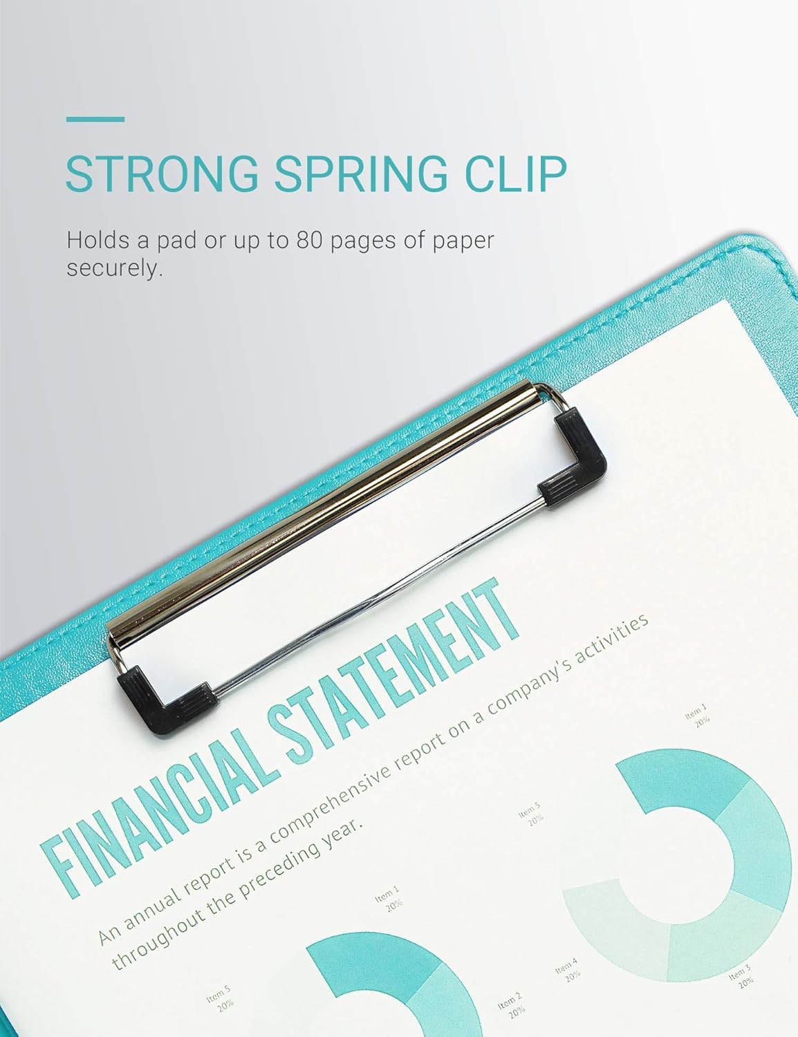 Clipboard Folder Padfolio, Writing Portfolio Faux Leather Clipboards with Cover for Legal Pad Holder Letter Size A4 8.5 x 11 for Business Conference Notepad Clip Boards (Pale Turquoise)