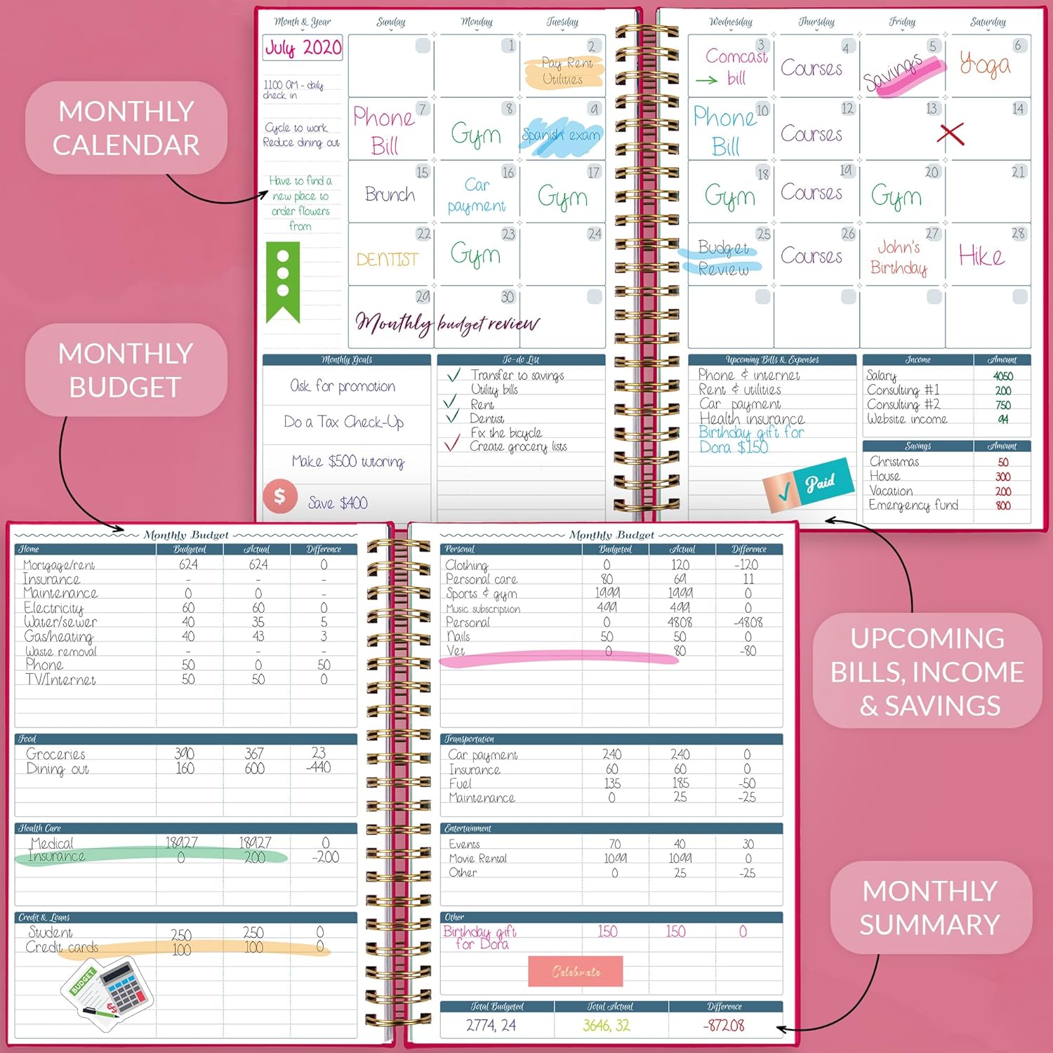 - EASILY MANAGE YOUR FINANCES: GoGirl Bill Budget Planner & Bill Organizer with help you set goals, meticulously track your expenses, reflect on your progress, and keep moving forward. This bill book has everything needed to easily manage your finances.