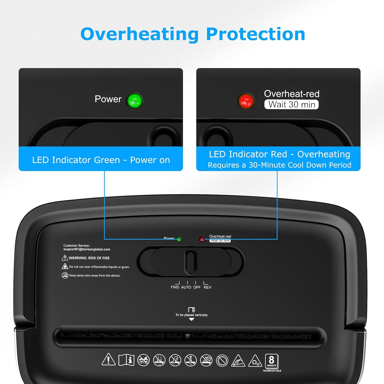 - 8-Sheet Shredding Capability: BONSEN shredders for home use provide powerful shredding for paper (letter size, 75g), credit cards (one at a time), staples and small paper clips