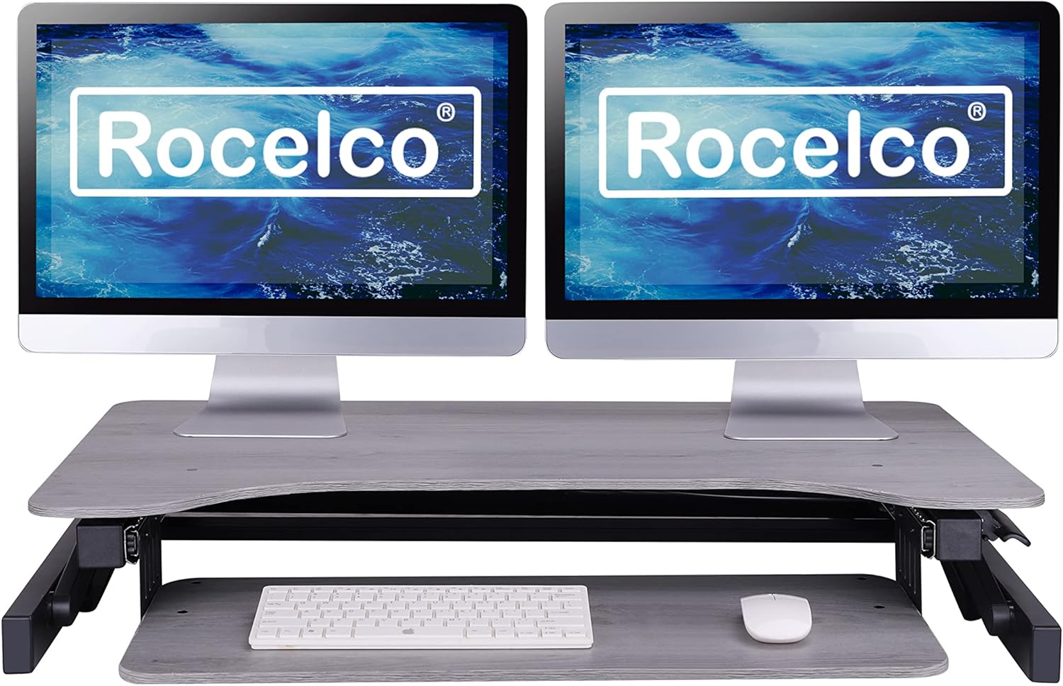 Rocelco 37.5" Deluxe Height Adjustable Standing Desk Converter - Quick Sit Stand Up Dual Monitor Riser - Gas Spring Assist Computer Workstation - Large Retractable Keyboard Tray - Gray (R DADRG)