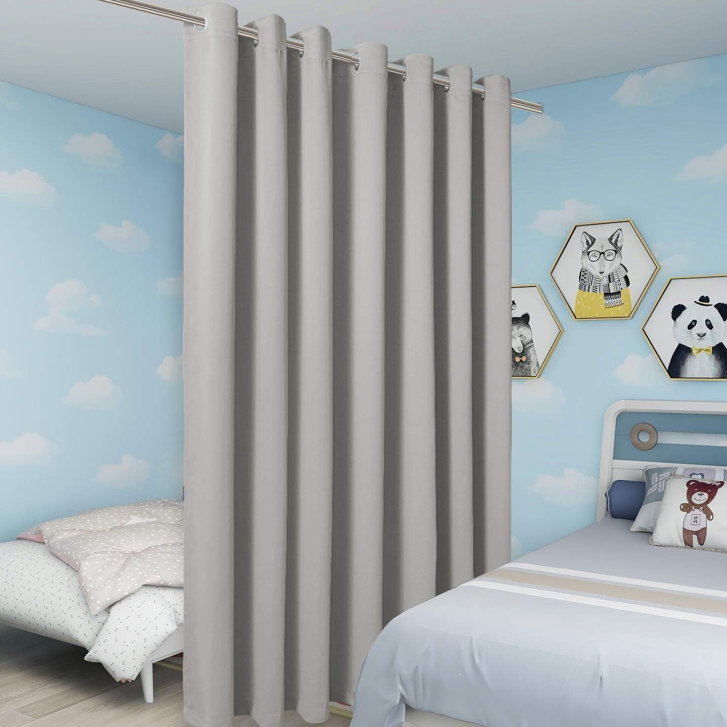 BONZER Room Divider Curtain Total Privacy Wall Extra Wide Grommet Room Darkening Curtains for Patio Sliding Glass Door, 96L x 120W Inch (8L x 10W ft), 1 Panel, Silver