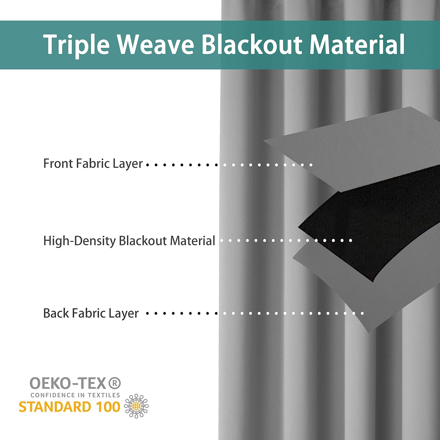 - PREMIUM BLACKOUT MATERIAL: Our room darkening curtain is made of 100% polyester fabric and have the same color with the front and back. Crafted in a certified STANDARD 100 by OEKO‑TEX factory from a durable soft and thick triple weave blackout fabric which block out 90% above sunlight and UV rays. Darker colors work better.