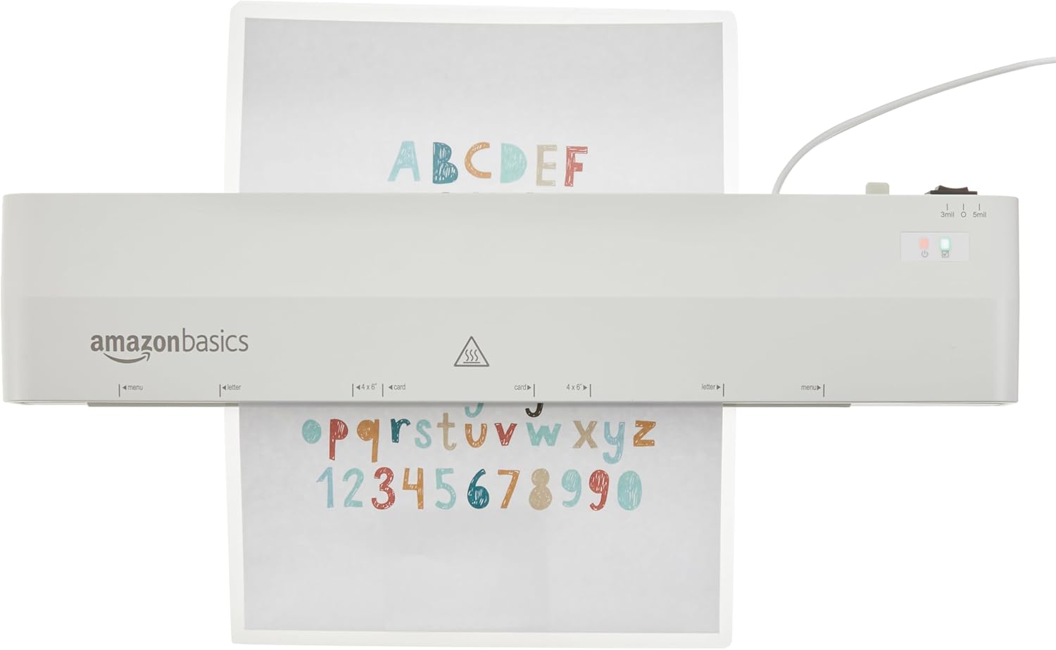 - 2 heat settings: 3 mil (best for normal documents, photos, and card stock) and 5 mil (best for thinner papers)