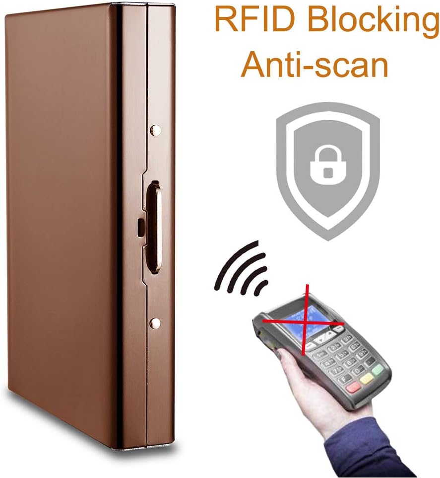 EASTNIGHTS RFID Credit Card Holder Protector Metal Credit Card Wallet Business Card Holder for Men Women Gift Box Package (Copper)