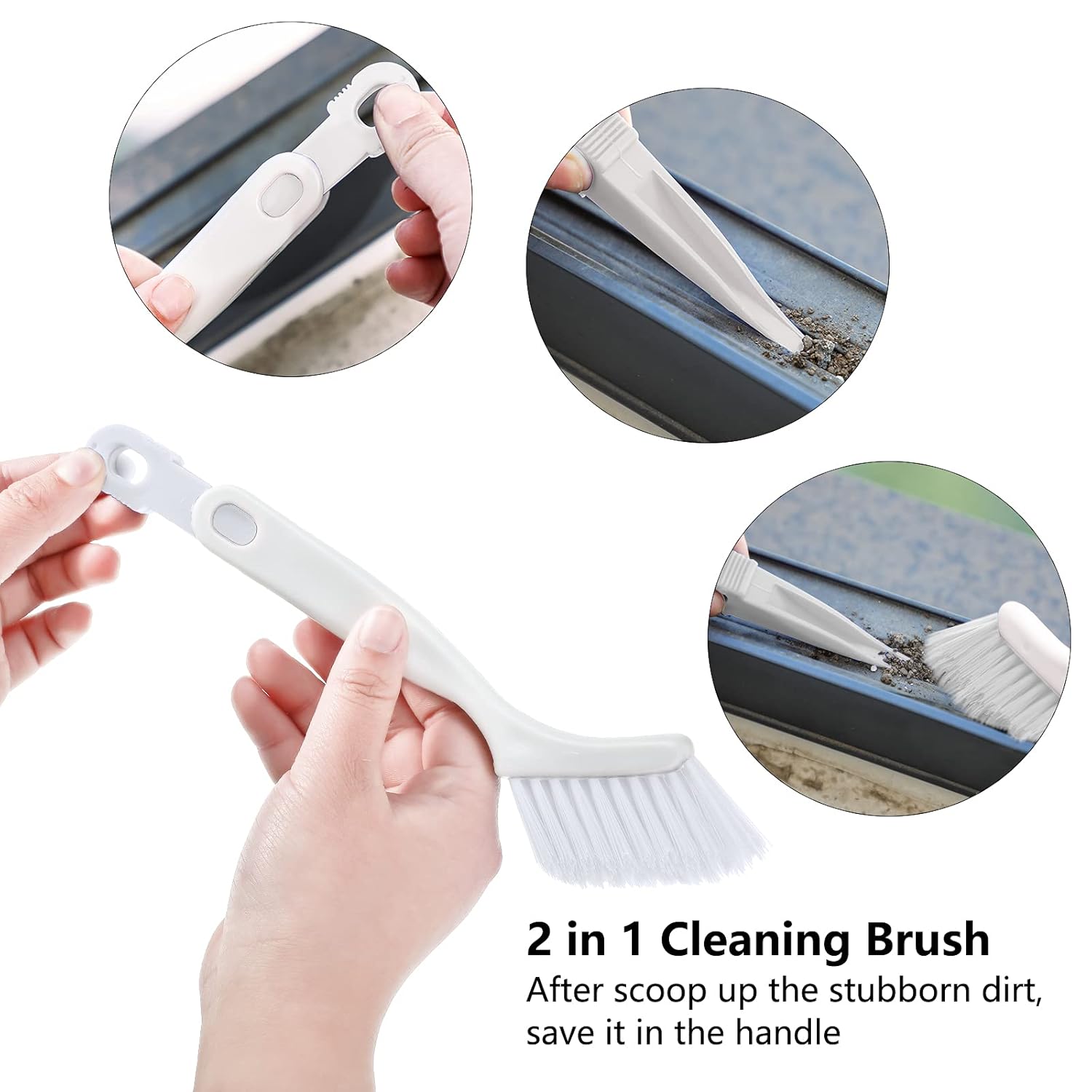 - Practical 2-in-1 design: the window cleaning brushes are ideal to clean window, sliding door and shower door tracks more easily and quickly; The 2-in-1 design, detachable brush head and narrow tufted brush end make the cleaning brush convenient to sweep away loose dirt, the other end scraper can help to dislodge stubborn dirt in corners, brush, dust pan and other cleaning set; The kitchen brushes are detachable and convenient to use and store