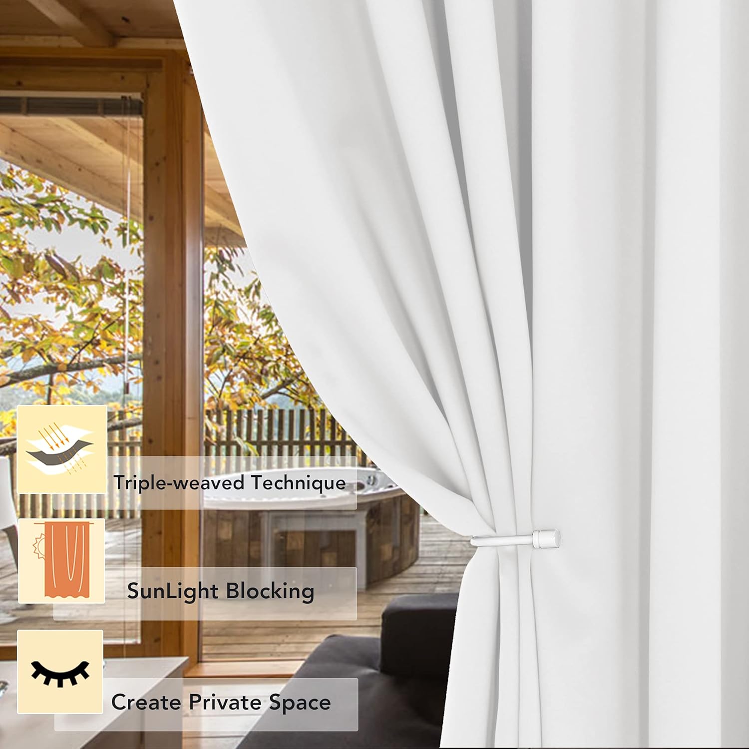 - PREMIUM BLACKOUT MATERIAL: Our room darkening curtain is made of 100% polyester fabric and have the same color with the front and back. Crafted in a certified STANDARD 100 by OEKO‑TEX factory from a durable soft and thick triple weave blackout fabric which block out 90% above sunlight and UV rays. Darker colors work better.