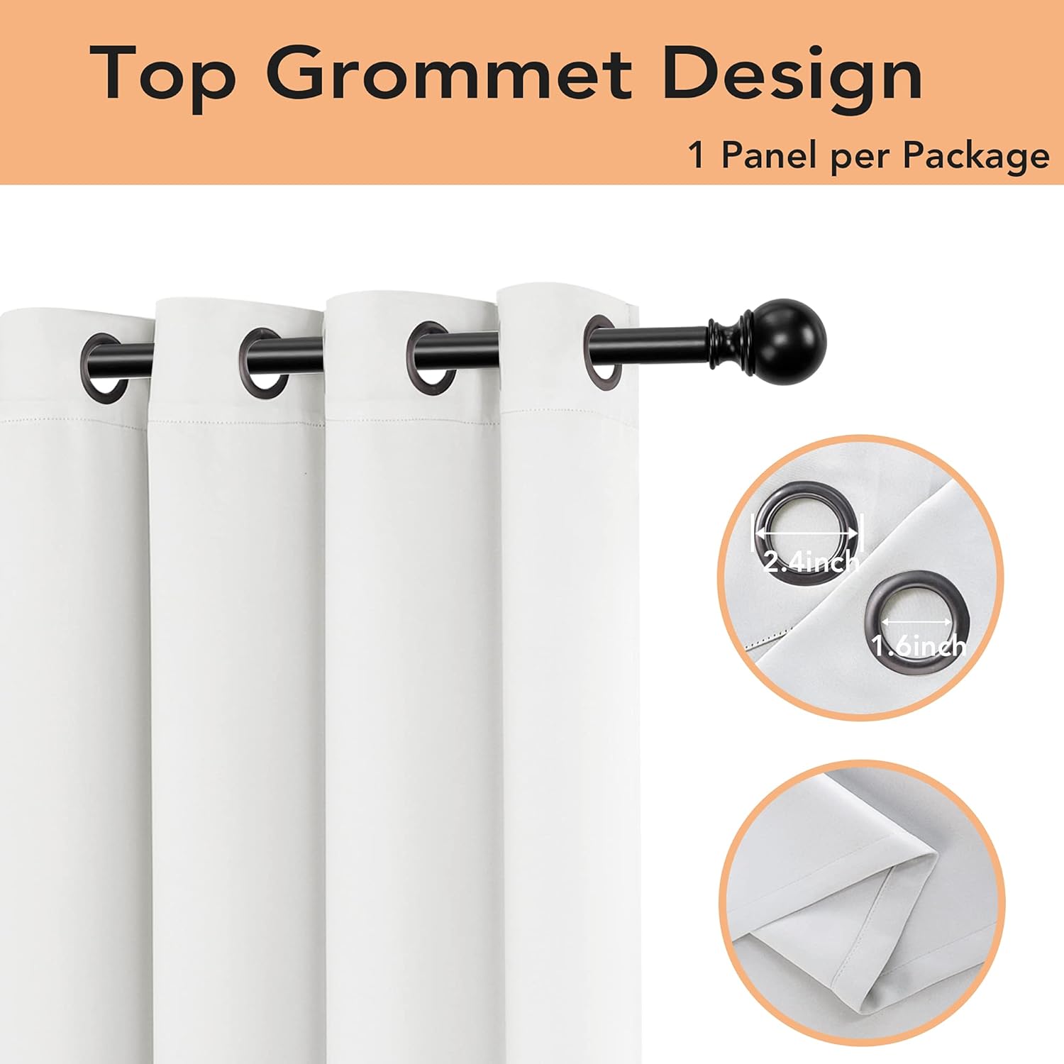 - WHAT'S IN THE PACKAGE? Each set includes 1 curtain panel, and each window drape measures 108-inch (9 ft) length by 70-inch 5.8 ft) width. 14 elegant metal grommets with 1.6-inch inner diameter, fit well with standard or decorative curtain rods, which makes the curtains easy to install and slide.