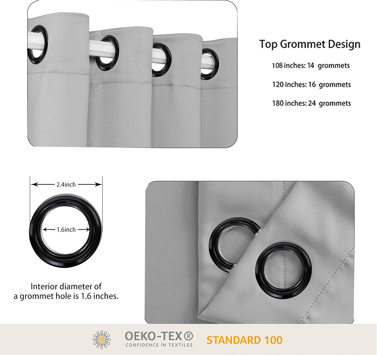 - WHAT'S IN THE PACKAGE? Each set includes 1 curtain panel, and each window drape measures 108-inch (9 ft) length by 150-inch (12.5 ft) width. 14 elegant metal grommets with 1.6-inch inner diameter, fit well with standard or decorative curtain rods, which makes the curtains easy to install and slide.