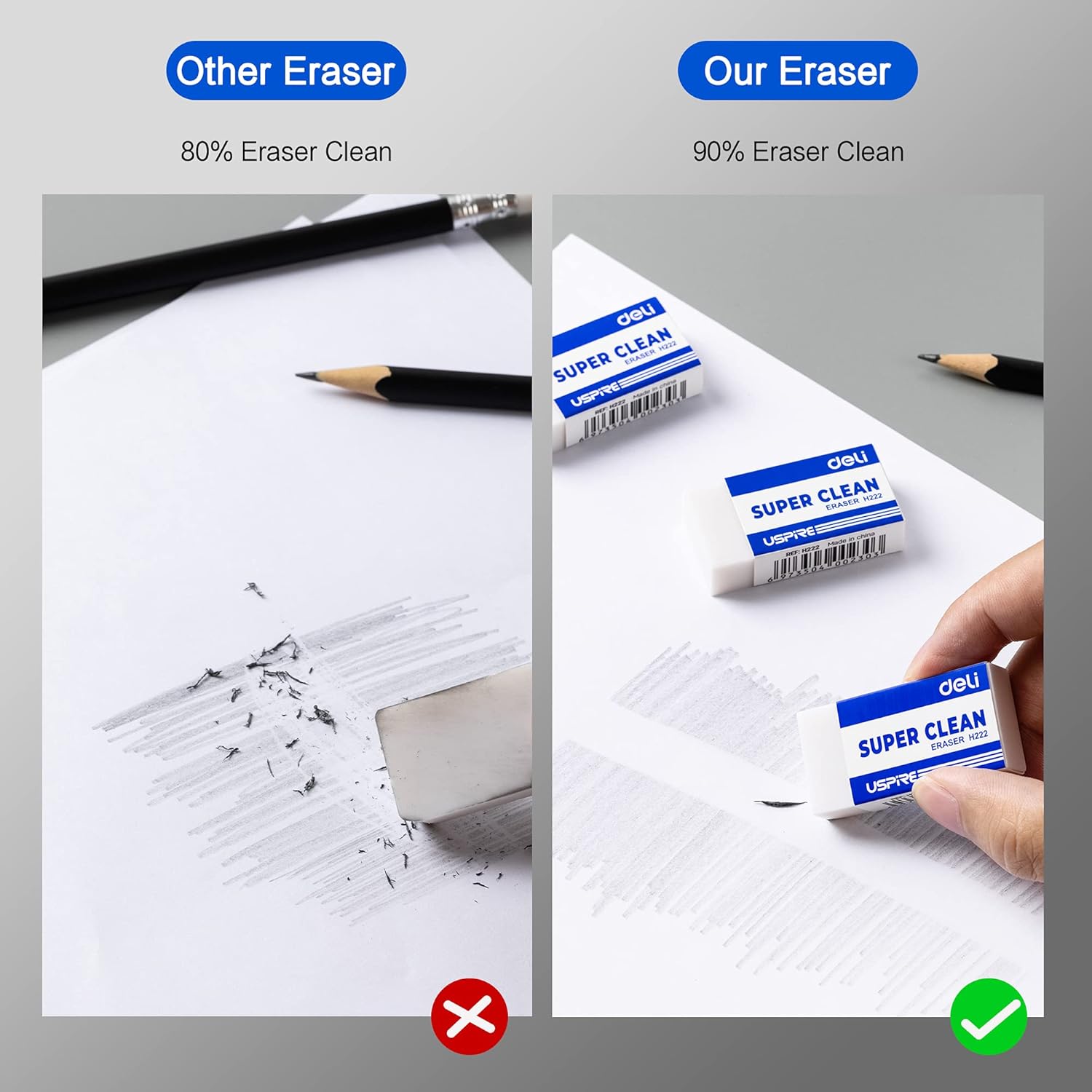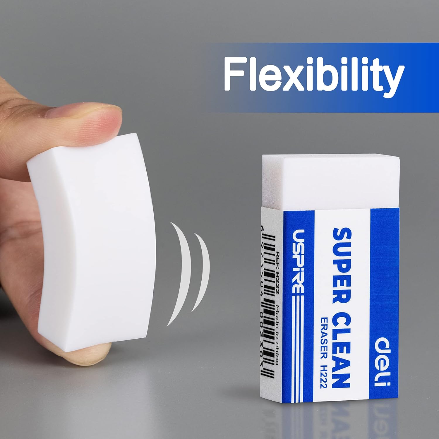 Deli Pencil Erasers, Pencil Eraser, 10 Pack, White Erasers, Erasers for Drawing, Kids, Artist, White, Large