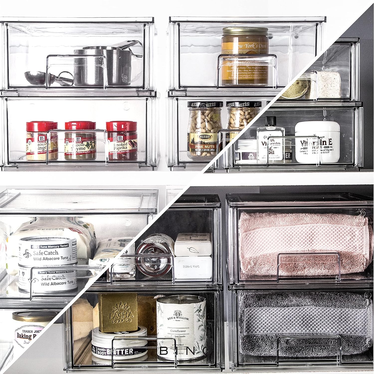 - Space-Saving Clarity: BINO's clear stackable storage drawer is your key to maximizing home organization. These durable Small drawers not only fit seamlessly into pantry shelves and fridge spaces but also have a low-profile design that slots into any nook or cranny, making the most of your available space. Say goodbye to clutter and hello to sleek, organized living.