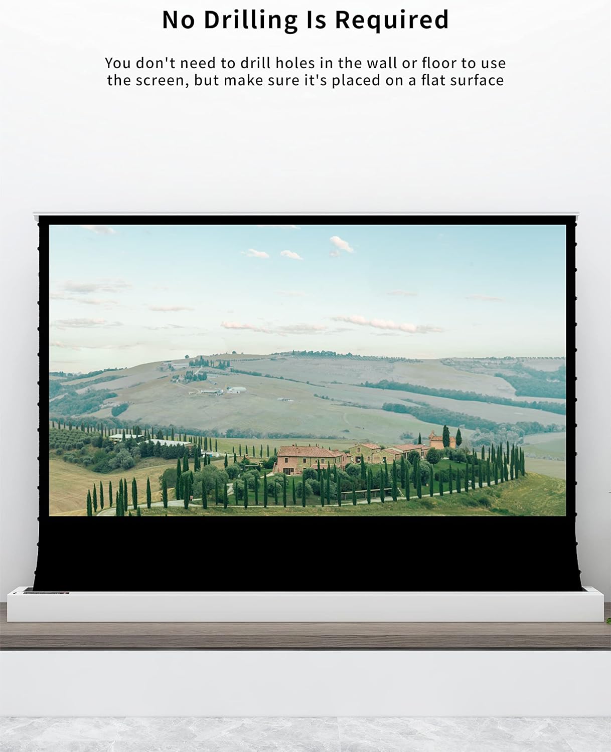 - ▶【Fast easy to Set UP & Space-saving Design】Plug in the power cord to achieve the installation in 1 minute! ; No screws necessary;Change any indoor viewing place with your mood! Electric Pop-up/Floor Rising series projector screen is a collection of premium retractable electric screens that VIVIDSTORM Unique Wire Tension Technology. Flatness like glass surface. and extend upward from the floor. when the screen is not used, just close it which makes it unobtrusive;