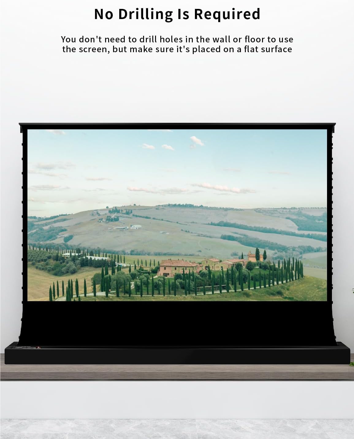 - ▶【Fast easy to Set UP & Space-saving Design】Plug in the power cord to achieve the installation in 1 minute! ; No screws necessary;Change any indoor viewing place with your mood! Electric Pop-up/Floor Rising series projector screen is a collection of premium retractable electric screens that VIVIDSTORM Unique Wire Tension Technology. Flatness like glass surface. and extend upward from the floor. when the screen is not used, just close it which makes it unobtrusive;
