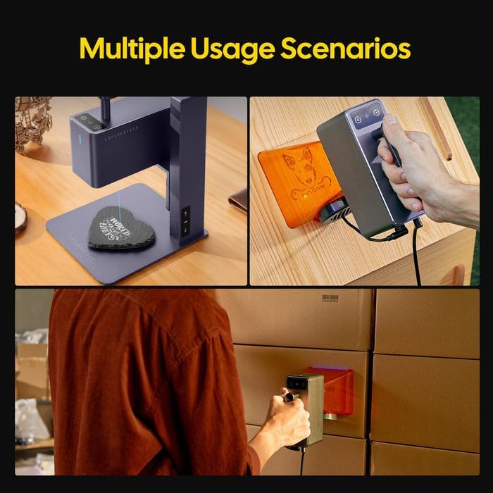 - LaserPecker LP2 Ultra-Portable Design: Compact 1kg handheld engraver with built-in handle—perfect for on-the-go creativity. Break free from workspace limits and engrave anywhere.