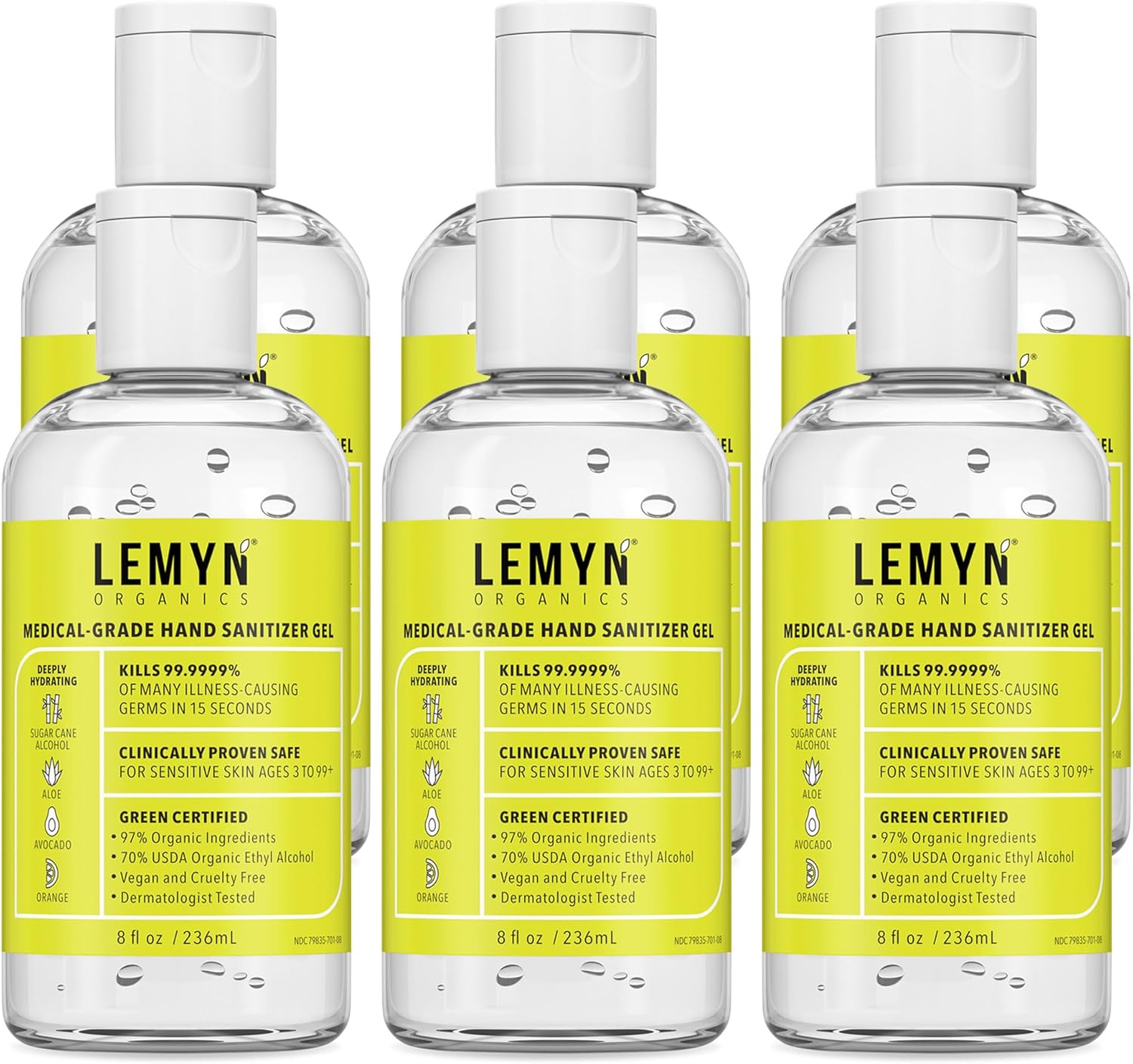 Medical Grade Hand Sanitizer Gel - 97% ORGANIC - 8 FL.OZ. Flip-Top (PACK OF 6)