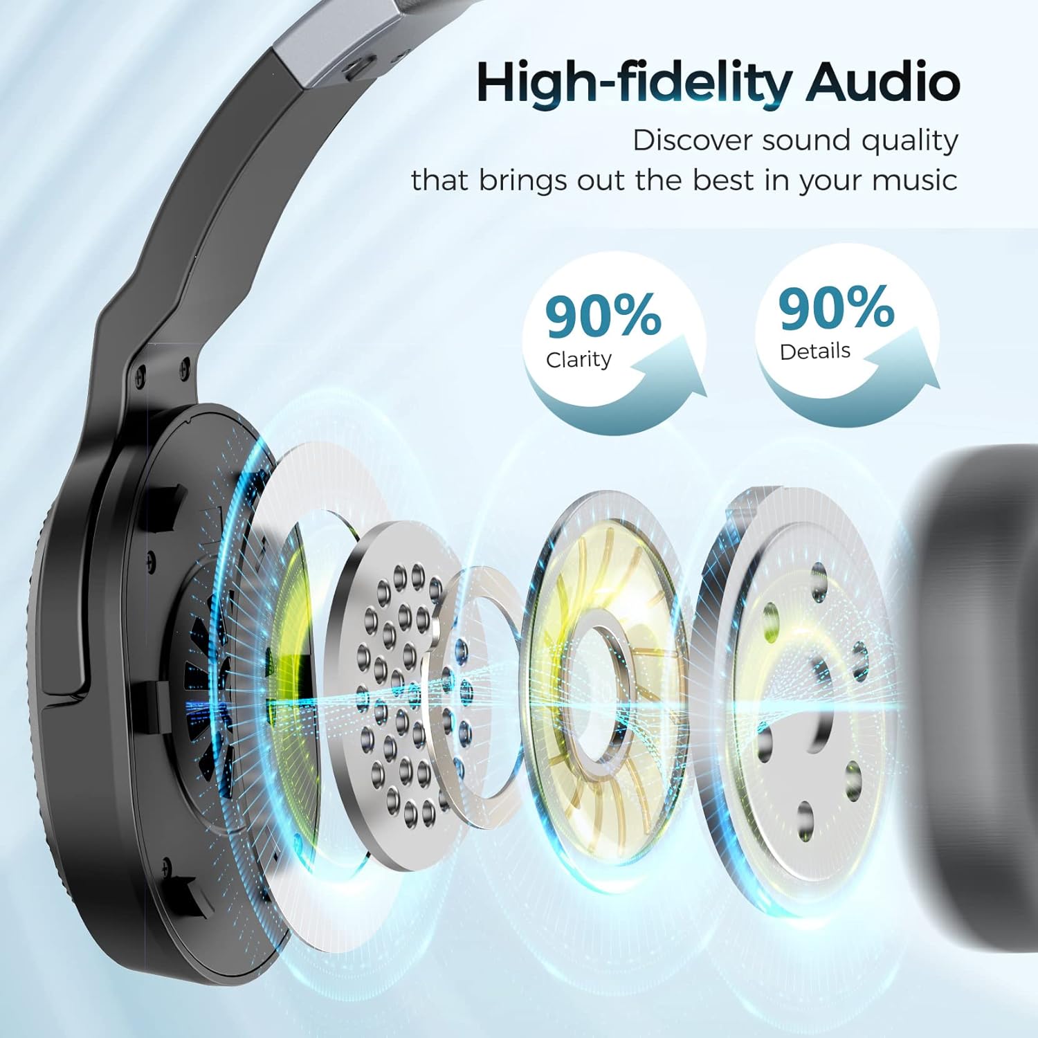 - 50-Hour Battery Life: These wireless headphones with mic provide 50 hours of continuous music time and 200 hours of standby time. They support extended use for calls and meetings without frequent recharging. The long-lasting battery maintains uninterrupted audio throughout the day