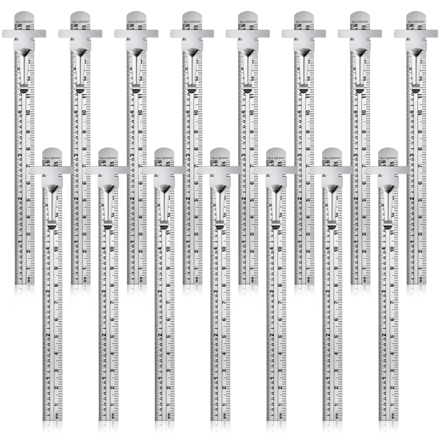 6 Inch 15 cm Pocket Ruler Flexible Precision Stainless Steel Ruler with Detachable Clips Stainless Steel Pocket Clip Scale Gauge Metric British System(15 Pieces)