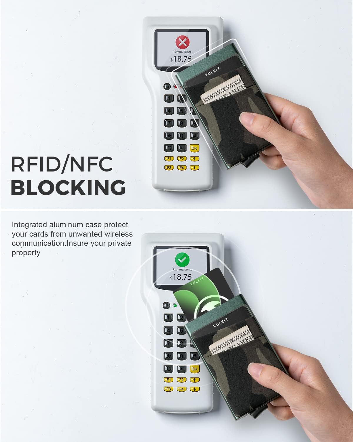 VULKIT Card Holder with Money Pocket Pop Up Wallet RFID Blocking Slim Metal Bank Card Case Holds 5 Cards and Notes