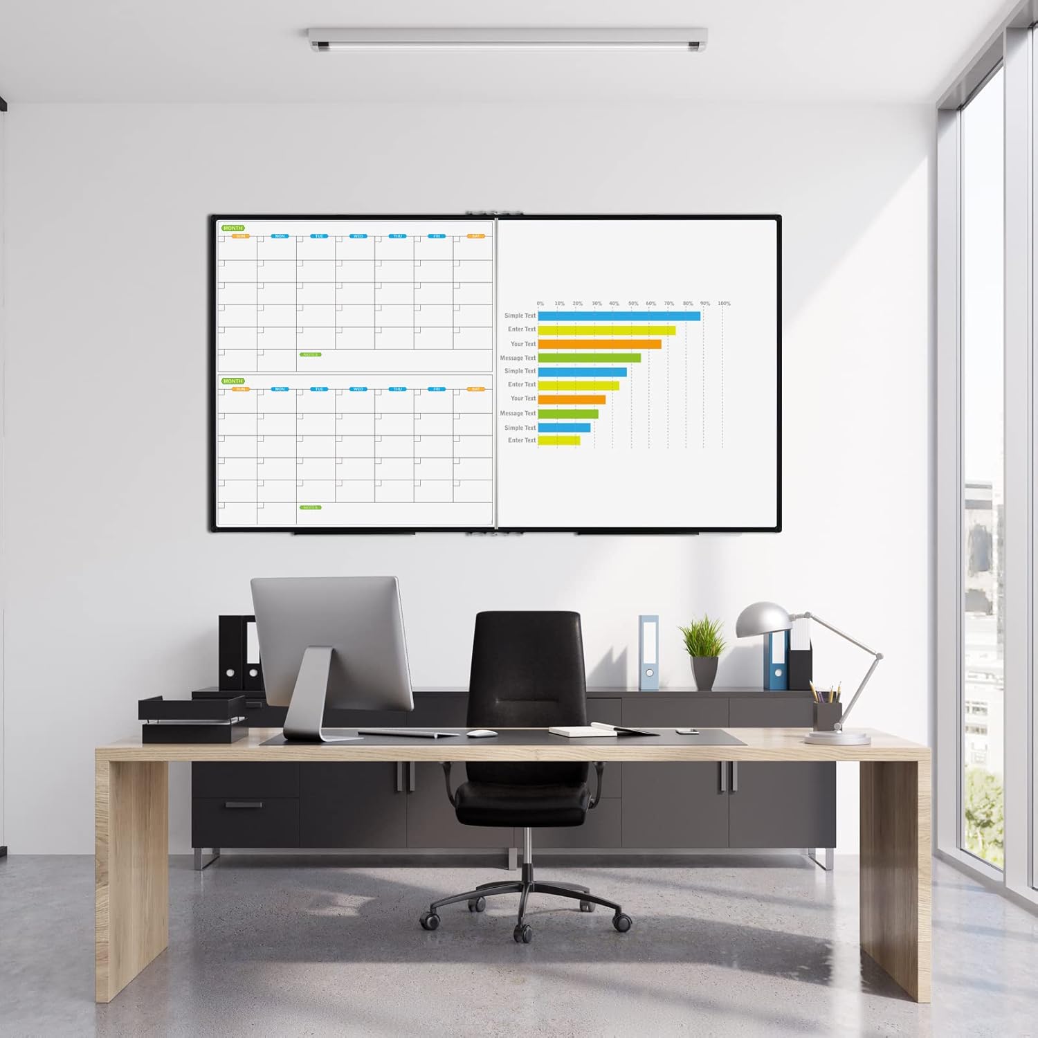 JILoffice Magnetic Foldable Dry Erase Calendar Whiteboard Combo, 2 Month Calendar Board & White Board 72 X 40 Inch, Black Aluminum Frame Wall Mounted Board for Office Home and School
