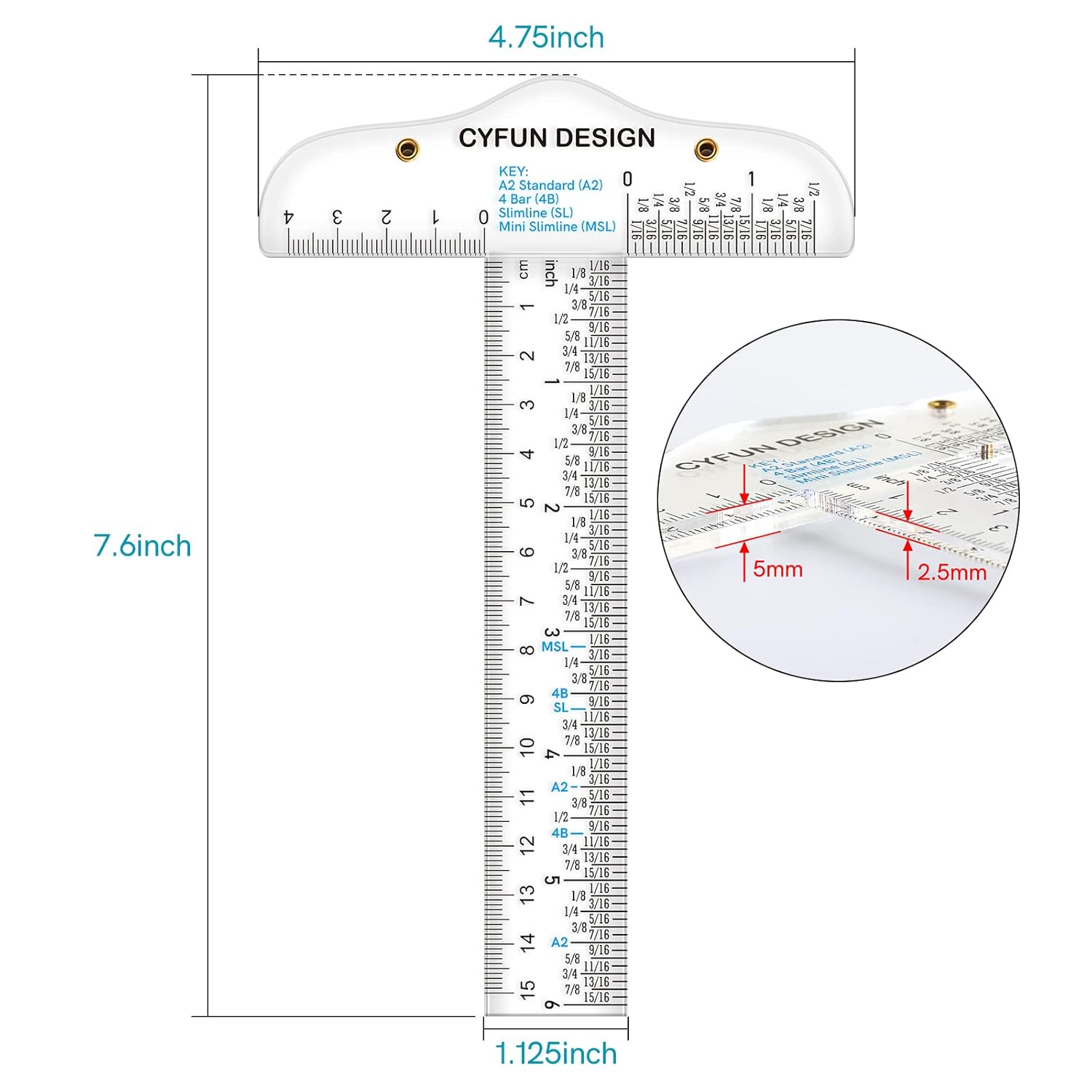 - PACKAGE INCLUDES: 1 pieces T-Shape transparent rulers in one package, the size of this ruler is 7.6x1.25x4.75inch 5/2.5mm in thickness,measures range is 6 inches/ 15 cm
