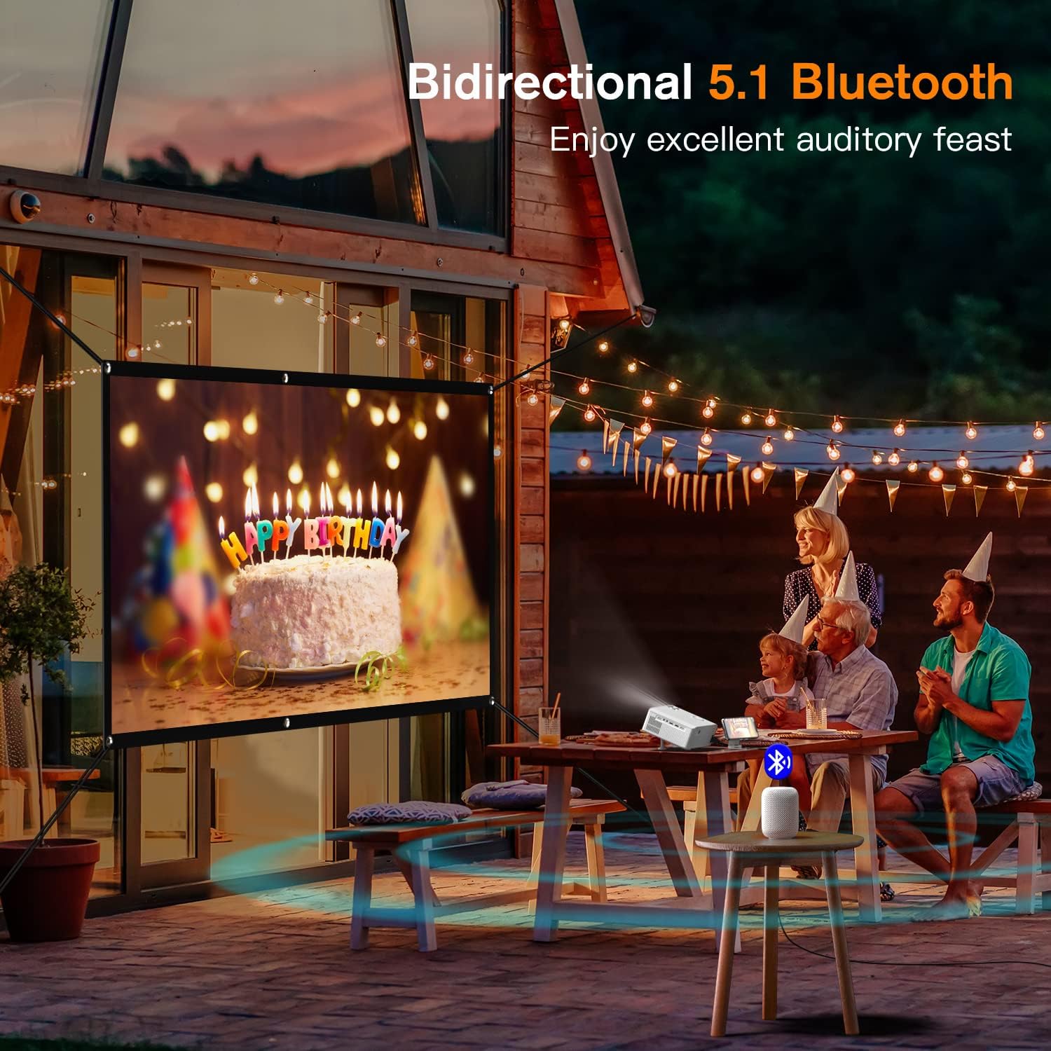- [5G/2.4G WiFi & Bluetooth 5.1] With the latest 2.4G and 5G dual-band WiFi, The AuKing WiFi projector provides faster and smoother running speed than other 5G WiFi projectors to say goodbye to any delays. The most advanced bidirectional Bluetooth 5.1 chip makes our projector easily connect to the external speakers or work as a Bluetooth speaker. What's more, the stereo dual speakers will offer original audio fidelity with clear sound quality even without external speakers
