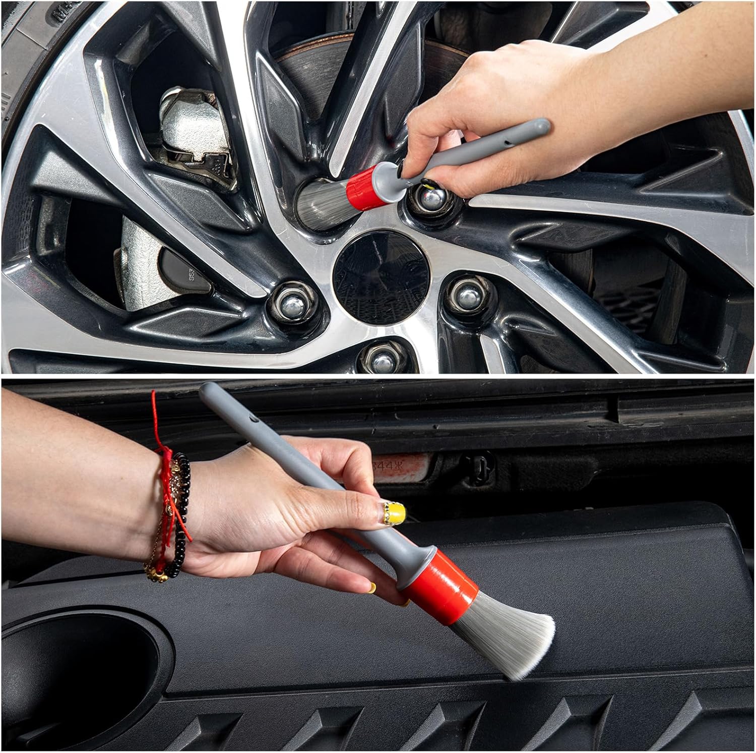 - VARIOUS SIZE -5 Different detail brush sizes, you can choose any one to suit your needs, enough length for easily exploring and reaching into the lug nuts, narrow or tight space.No wash is complete without a set of scratch-less brushes.