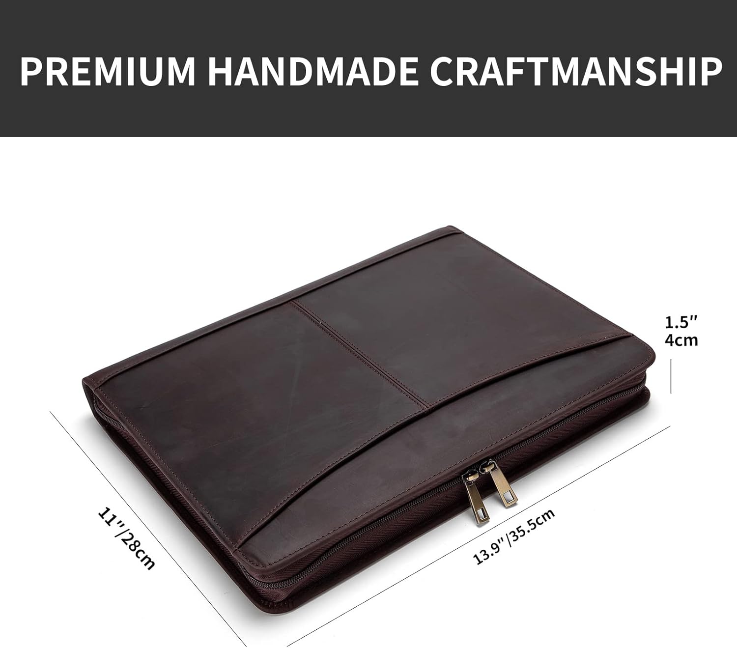 - Large Capacity for More Papers: The leather portfolio is thick with enough room and multiple pockets so you can carry more files and paper inside. Friendly to store paper and easy to close without bulges. The dual YKK zippers enclosure makes it smooth to zip. No more worry about damaging paper or stuck zipper.