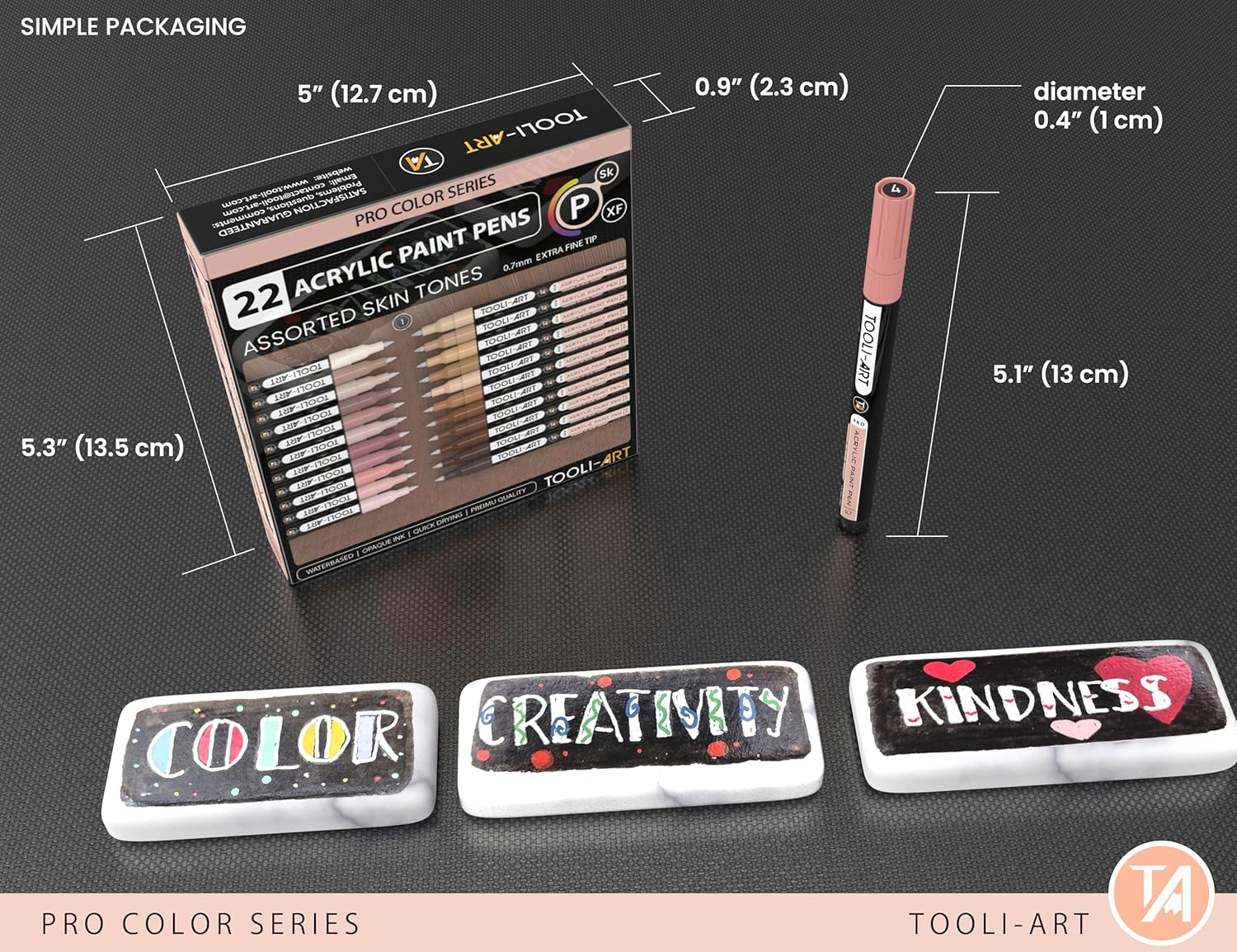 Acrylic Paint Pens 22 Skin Tones Assorted Pro Color Series Markers Set 0.7mm Extra Fine Tip for Rock Painting, Glass, Mugs, Wood, Metal, Canvas, Projects, Non Toxic, Waterbased, Quick Drying