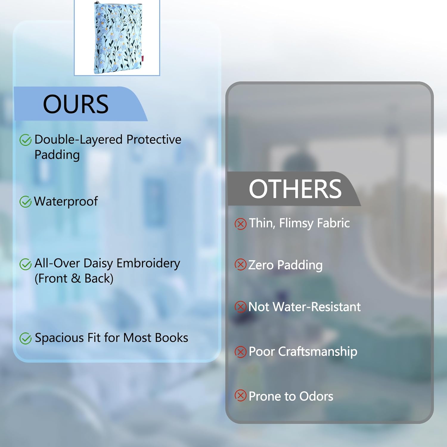 LParkin Daisy Flower Embroidery Book Sleeve with Zipper for Readers Protector Cover Gift for Book Lovers, 11x 8.5 Inch Washable Fabric, Daisy Blue
