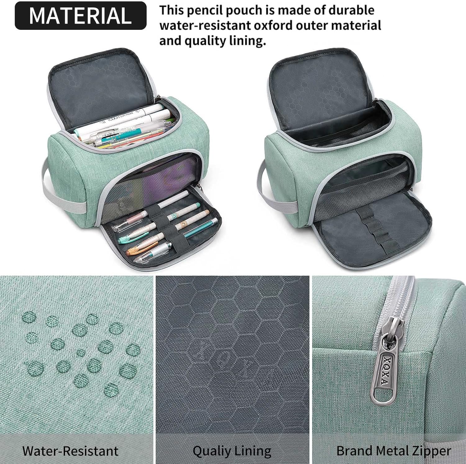 XQXA Extra Large Capacity Pencil Case Organizer, Multifunctional Pencil Pouch with Compartmens, Travel Simple Stationery Bag, Nylon Pencil Bag for Adults (Green)