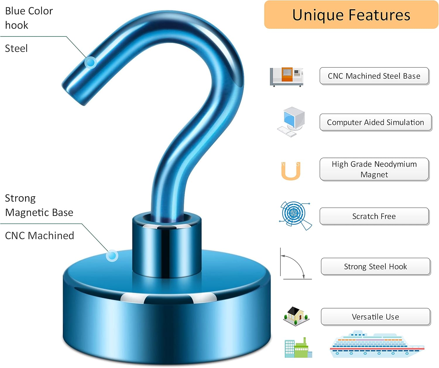 - ✔ VERSATILE USE- Neosmuk’s strong neodymium magnetic hooks were endowed with a strong capability for holding various items wherever there is iron or steel. This magnet hook is a perfect magnetic key holder. You can also hang your tools next to the toolbox with this magnetic hook. Our magnetic hooks are great for grill, pot, cup, utensils, and oven.