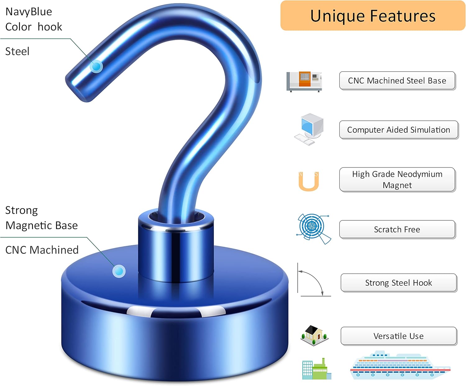 - ✔ SUPER POWERFUL - Amazing strong, sturdy, and heavy-duty metal magnetic hook with a CNC machined steel base, embedded with a high grade latest generation of ‘magnetic king’ i.e. super Nd-Fe-B, this magnetic hook offers more than 3 lb pulling force under steel. The magnetic hook is perfect for hanging items on the fridge in the kitchen.