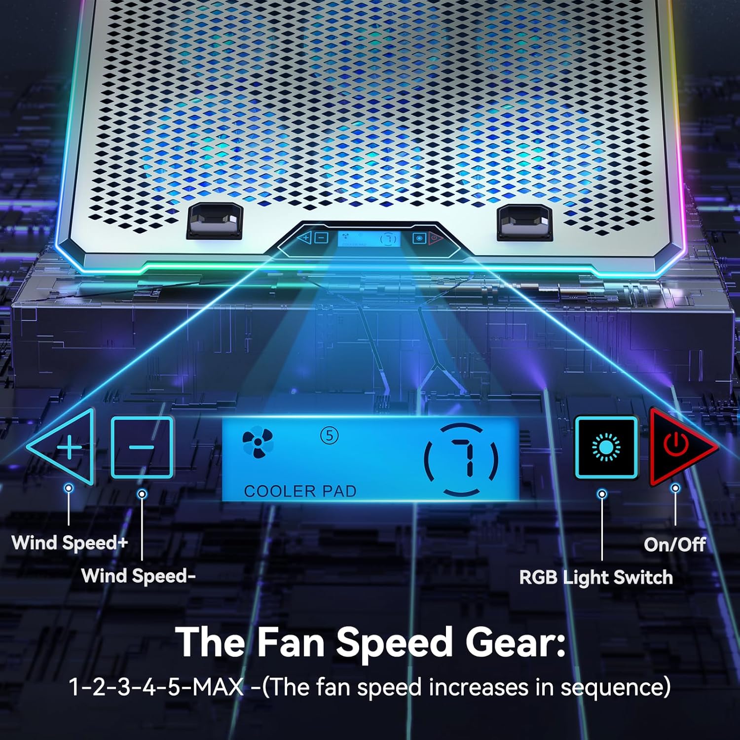 - Aircraft Aluminum & 6 Turbo Fans: 3X Faster Cooling Premium aluminum panel dissipates heat 3X faster than plastic and doubles standard metal cooling. 6 fans (3 large+3 small) deliver 1700-2400 RPM airflow at 18dB – silent yet powerful.