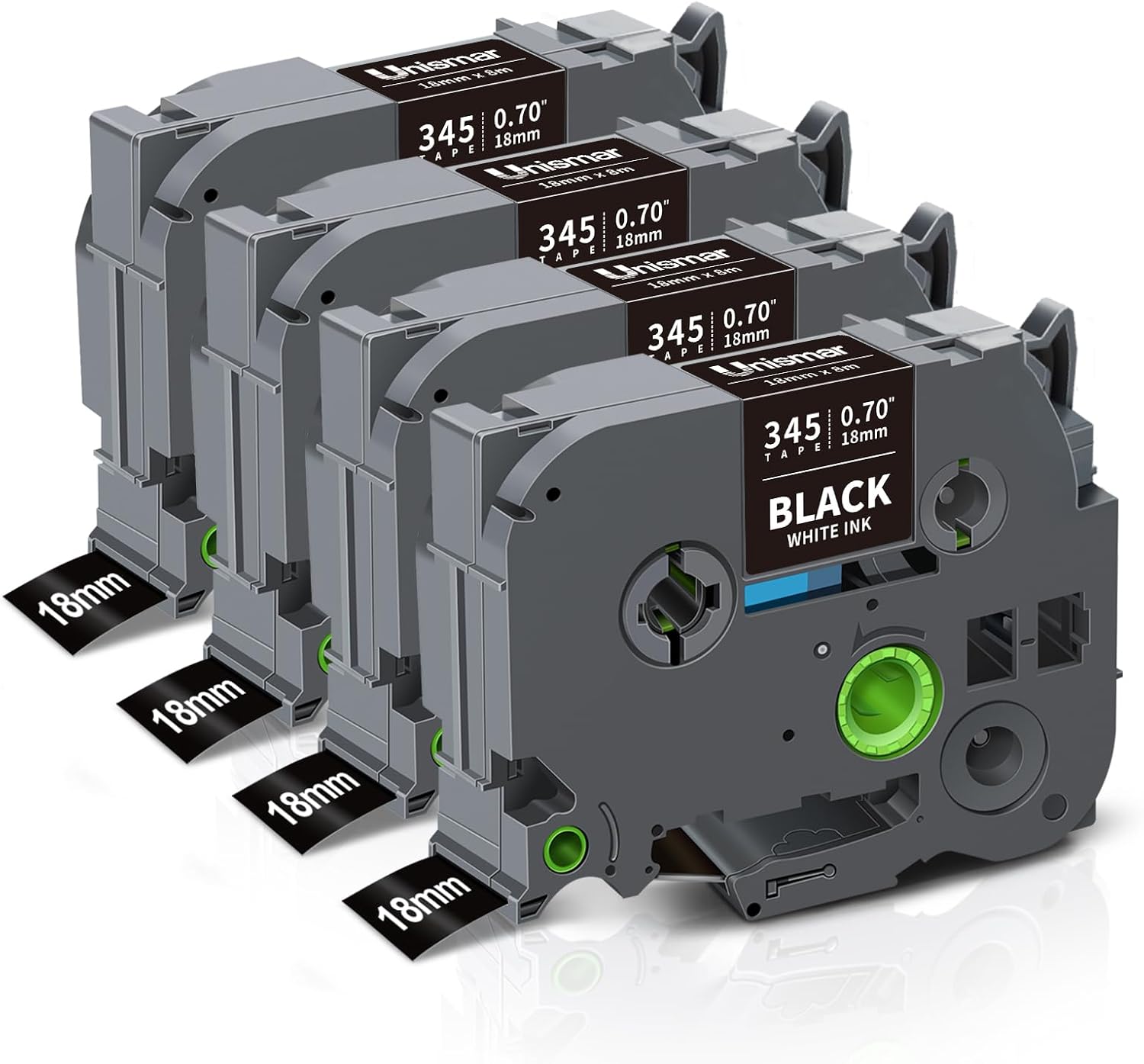 Unismar TZe-345 Compatible for Brother Ptouch 18mm 0.7 Laminated White on Black Label Tape TZ345 TZ Tape Work for PT-D400AD PT-D410 PT-D600 PT-D400 PT-2700 PT-1880 Label Maker, 3/4'' x 26.2', 4-Pack