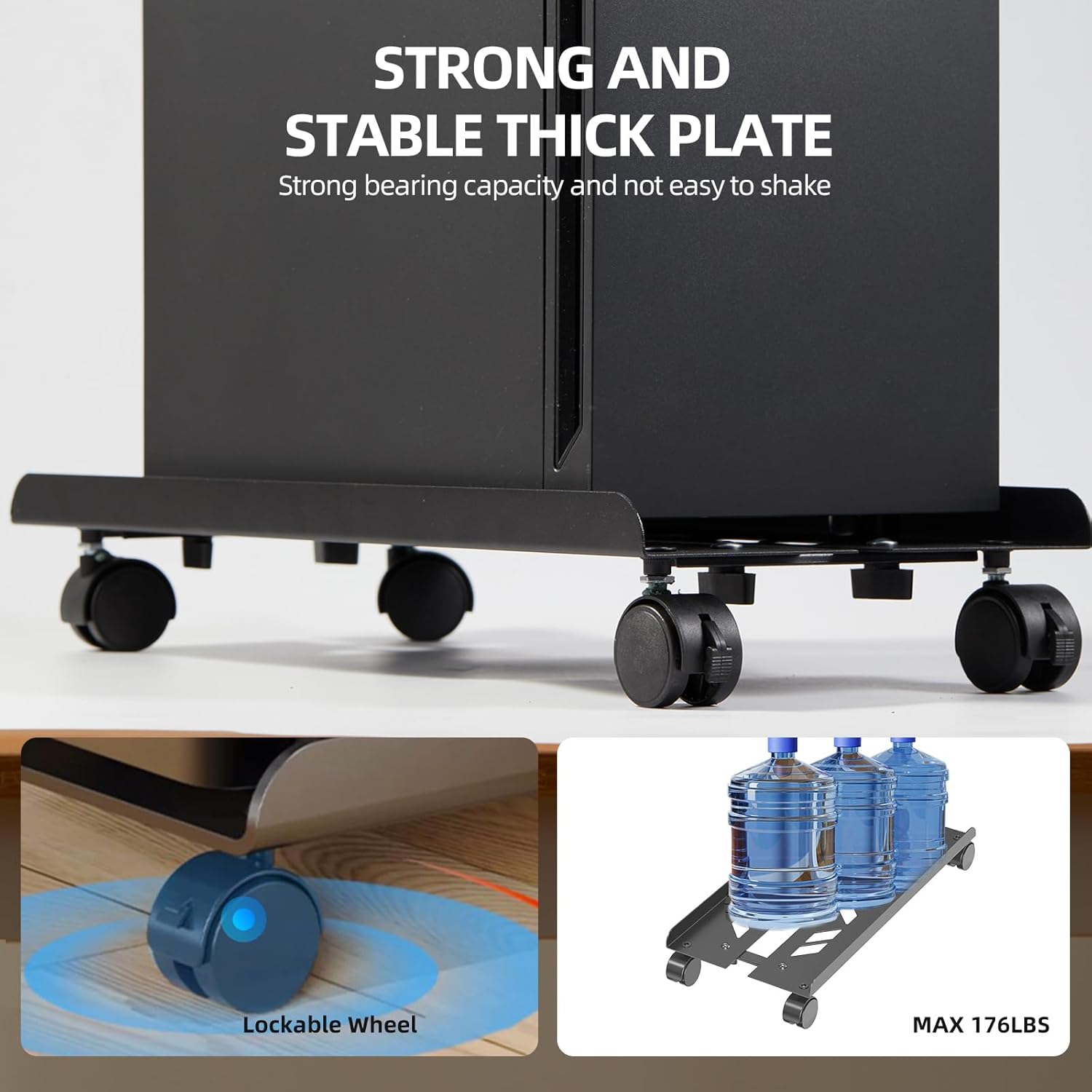 - Easy Movement: Four 360°rotating universal wheels can move the computer tower to the position you want, making it easy for you to move to clean the ground. And four of the wheels can be locked to keep them stationary when needed. when you need it, it can easily go under your computer desk or printer stand and stay in place