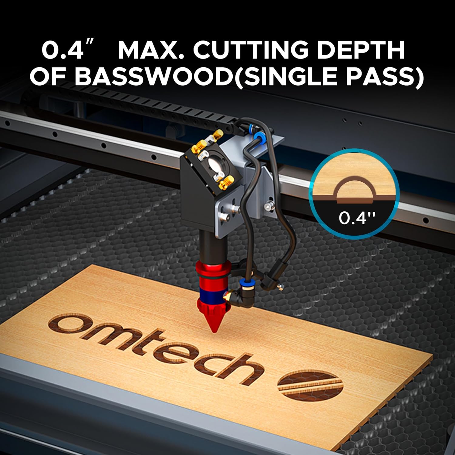 - Bring Your Creations to Life: OMTech's 90W CO2 laser engraver delivers precise cutting and engraving, capable of cutting up to 0.4" deep in wood and engraving on materials like glass, acrylic, and leather at 600 mm/s