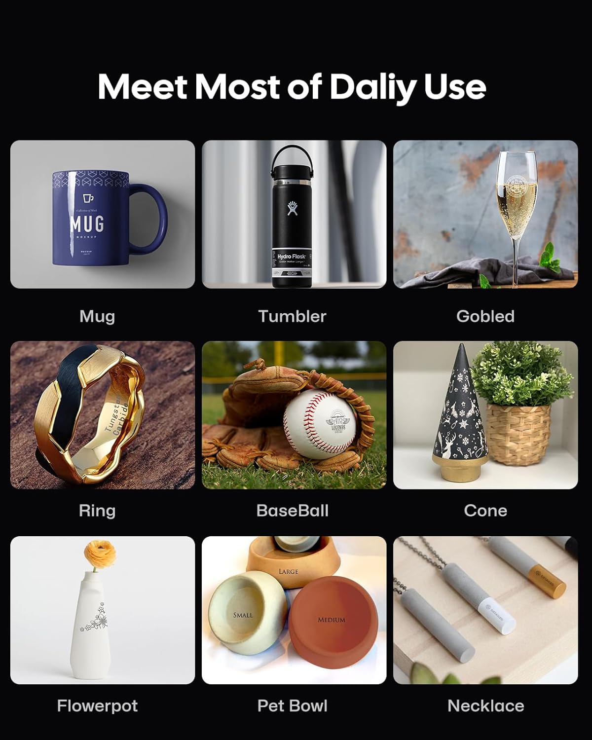 - Unlock 3X More Business Opportunities: Engrave Rings/Bottles/Spheres from 3mm to 200mm – Perfect for Jewelry Stores & Souvenir Shops. Charge $15-50/Engraving with Pro-Level 360° Wraparound Designs.