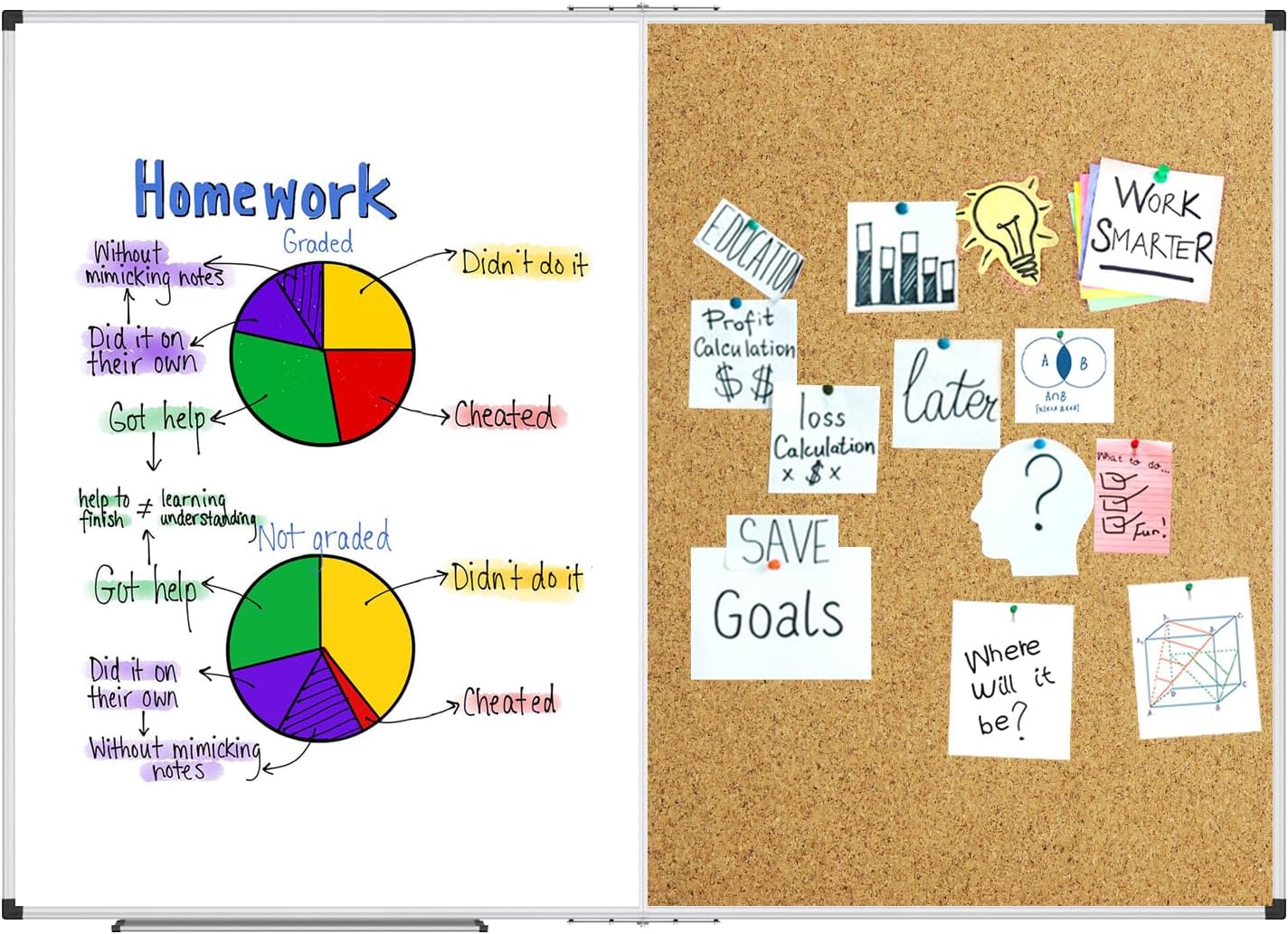 XBoard Magnetic White Board and Bulletin Corkboard Combination, 36 x 24 Inch Half Dry Erase & Cork Combo Board for Wall with Aluminum Frame, 3' x 2' Notice Memo Board Tack Pin Board Vision Board