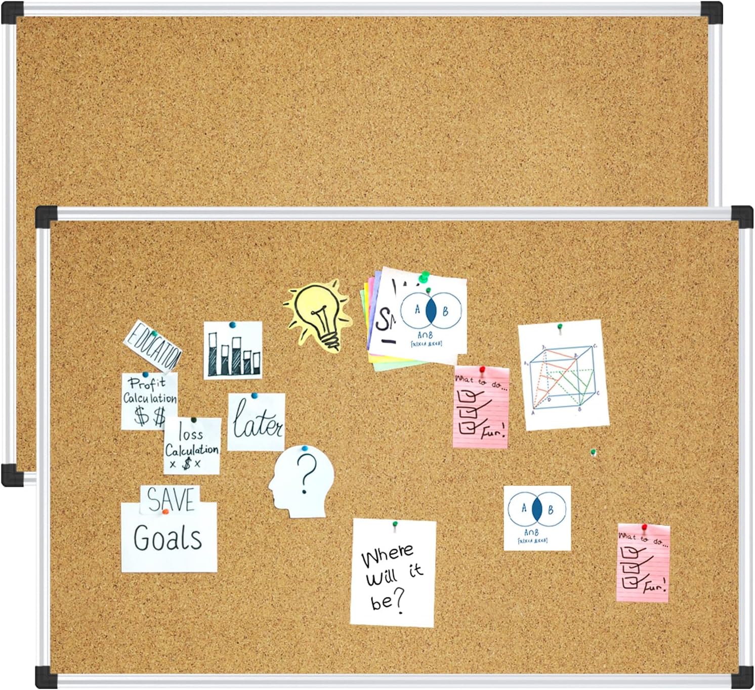 XBoard 24 x 18 Inch Cork Bulletin Notice Pin Board for Wall with Aluminum Frame for Home School & Office Display (Pack of 2)